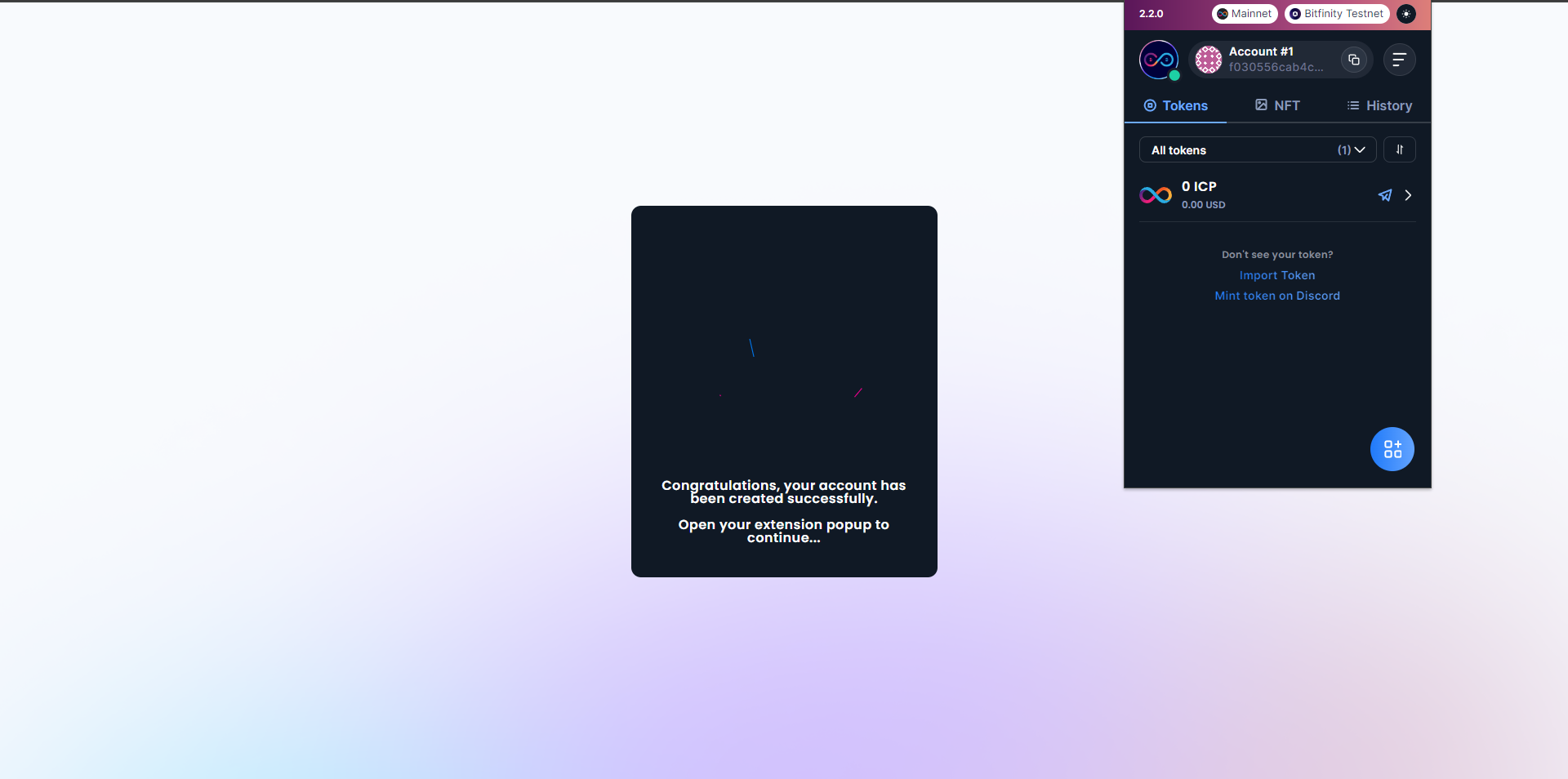 First, go to wallet.bitfinity.network & install the Bitfinity wallet extension.