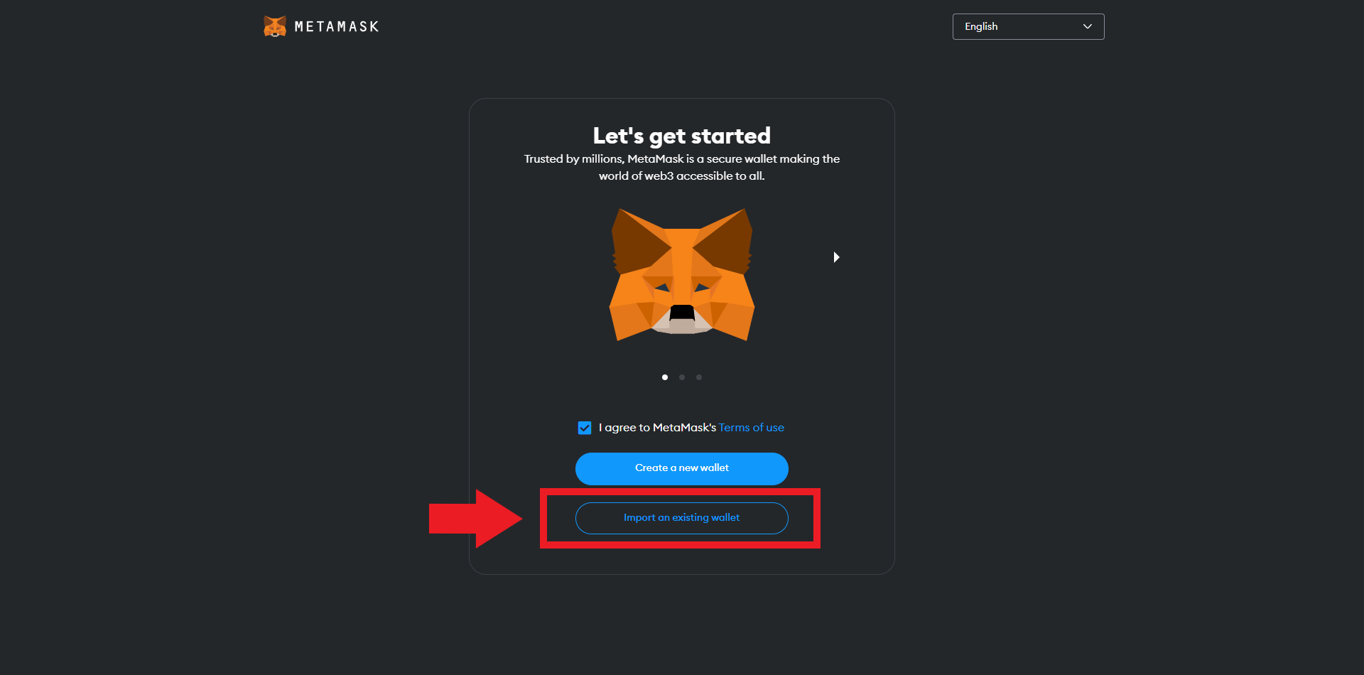 Now we need to migrate our wallet to MetaMask, to do this, we need to insert our Bitfinity seed phrase into MetaMask.