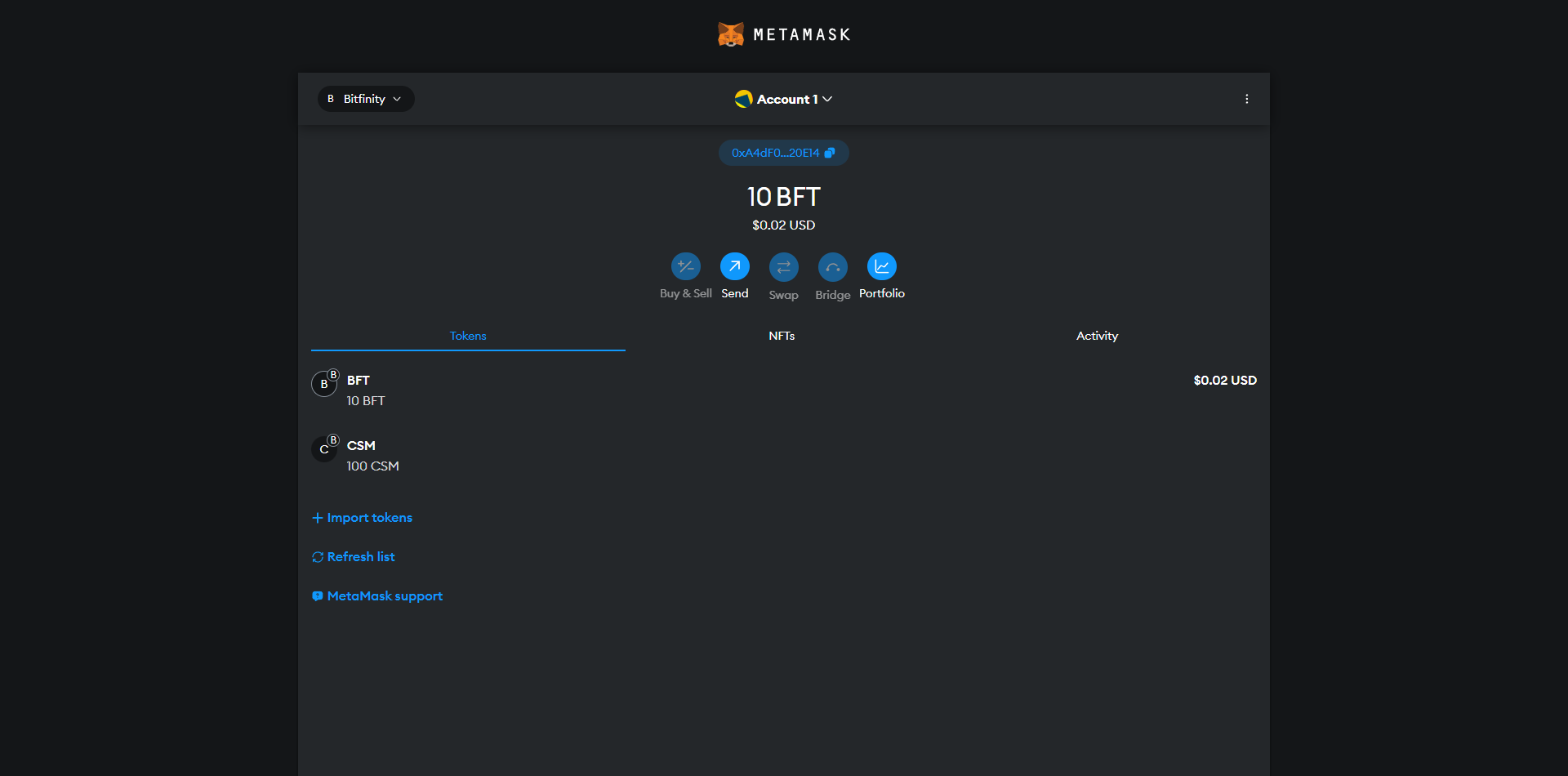 Now let's go ahead and request some test tokens from the faucet: https://bitfinity.network/faucet