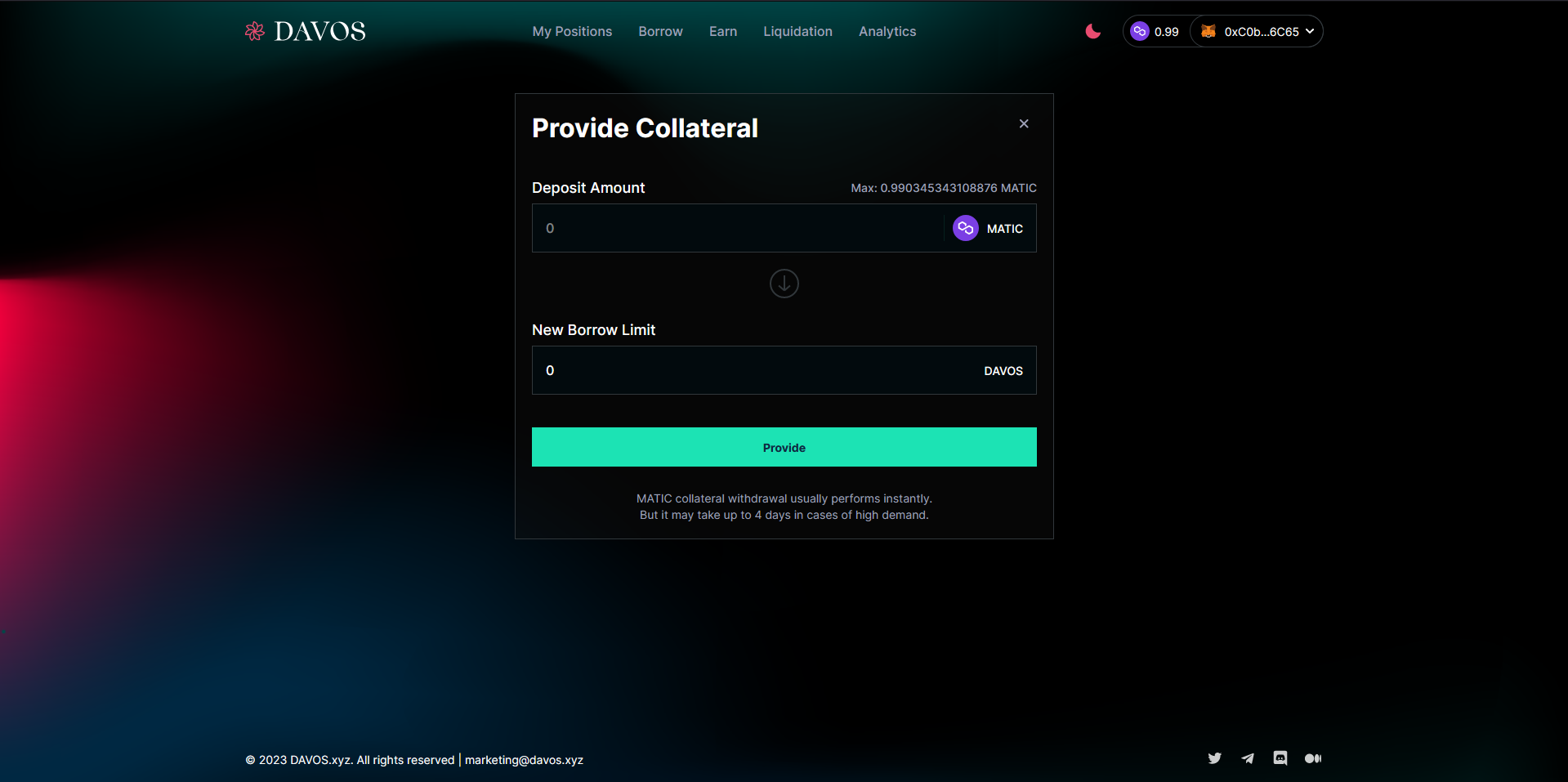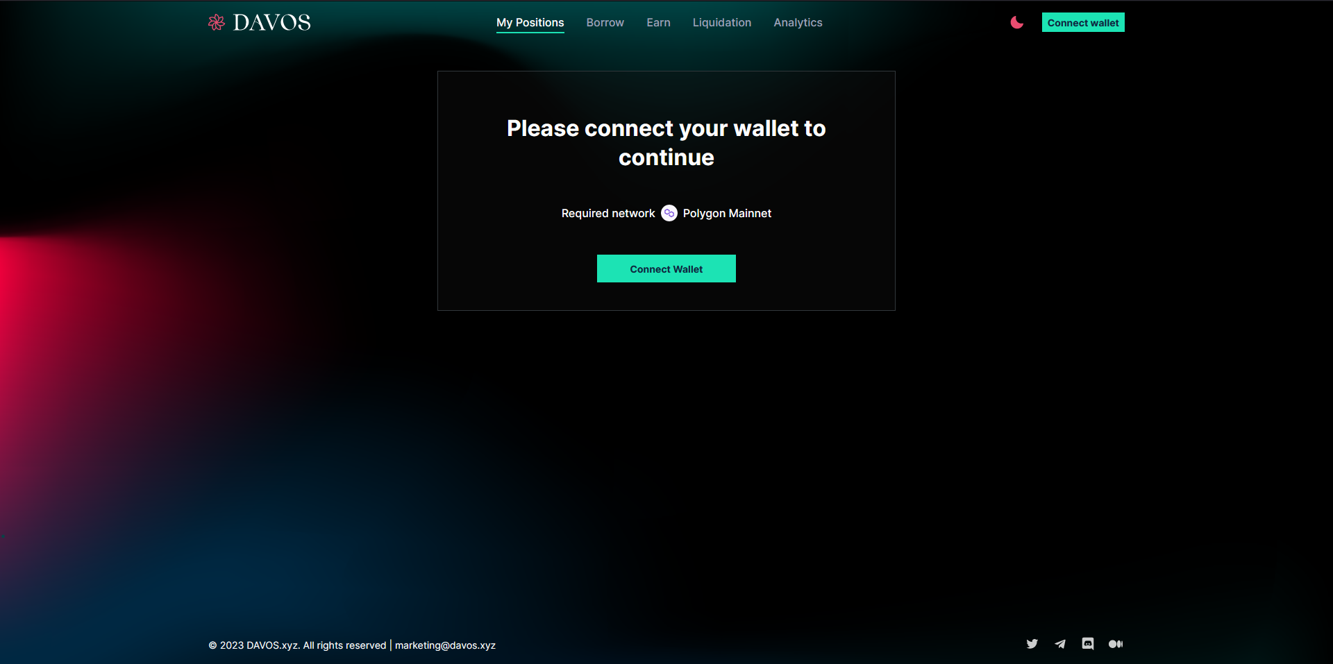 Go to davos.xyz/app/dashboard & connect your wallet.