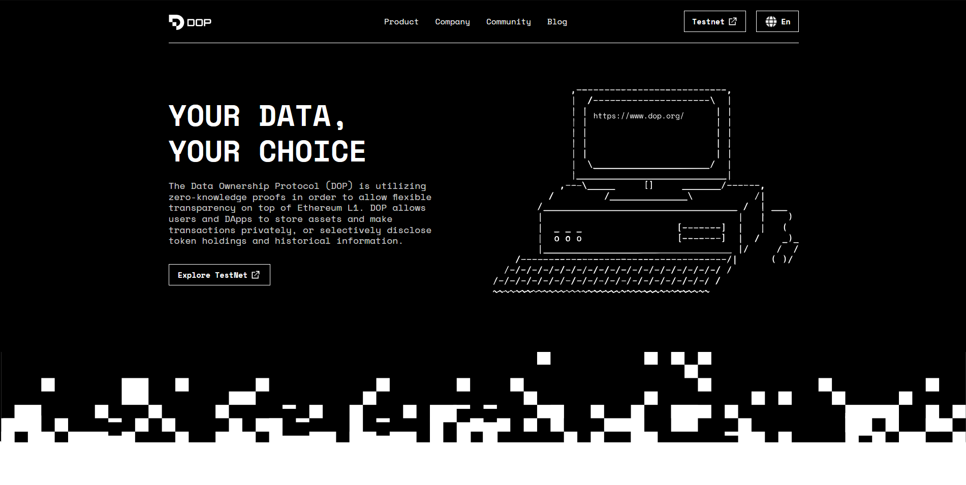 The Data Ownership Protocol (DOP) leverages zero-knowledge (zk) proofs to enable adaptable transparency within Ethereum L1. It permits users and decentralized applications (DApps) to privately store assets and conduct transactions, while also giving them the option to reveal token holdings and historical data selectively.