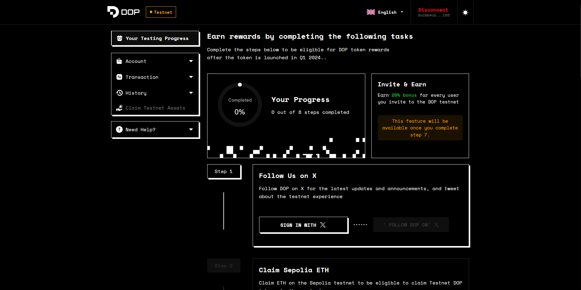 In this guide, we're going to take a look at DOP Testnet and how to interact with the platform.