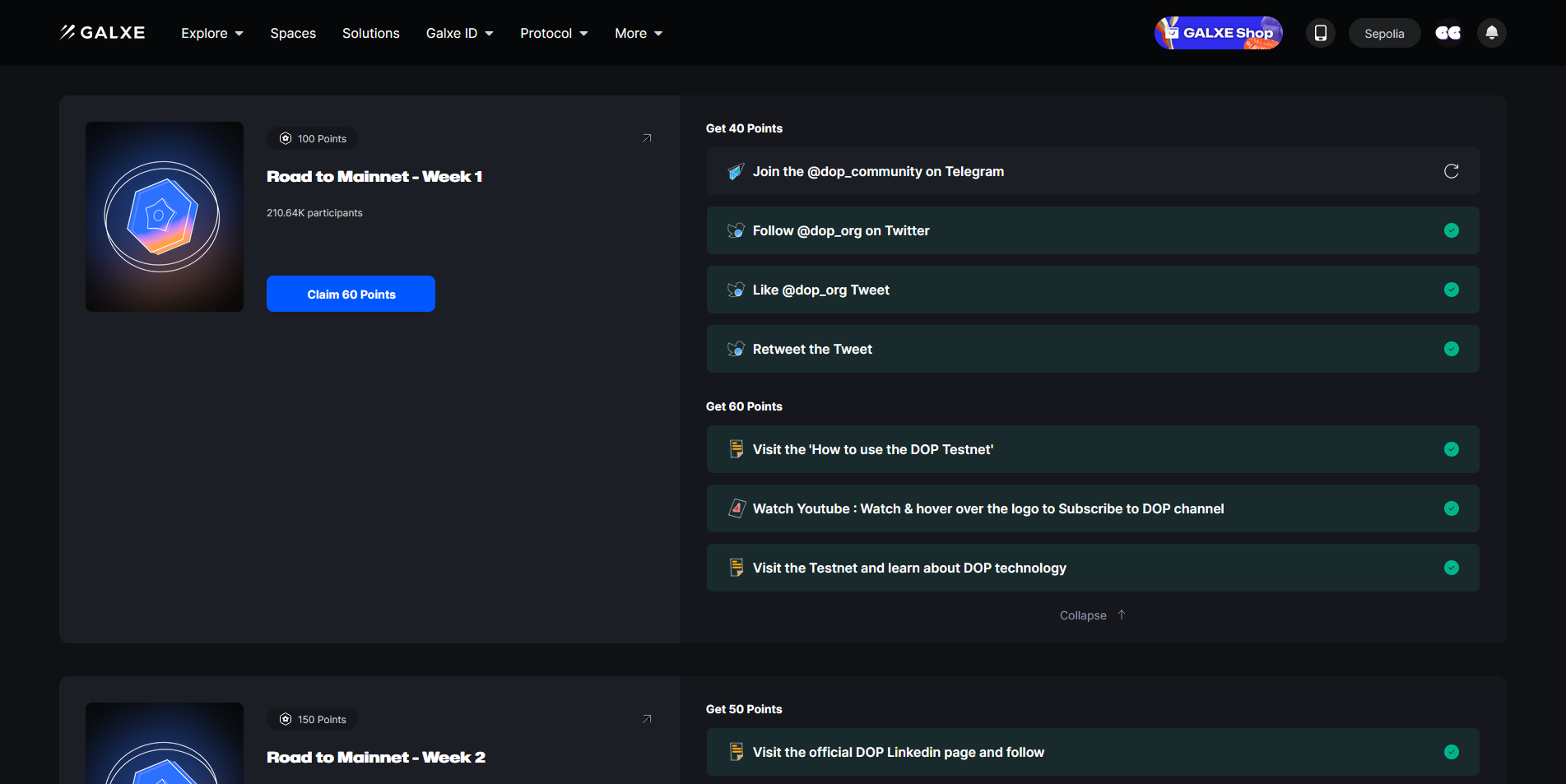 Now let's head over to the Galxe Campaign, verify completion for the tasks and claim your points!