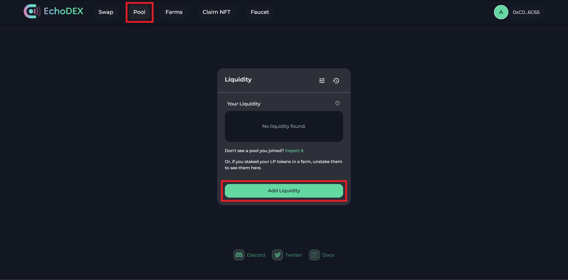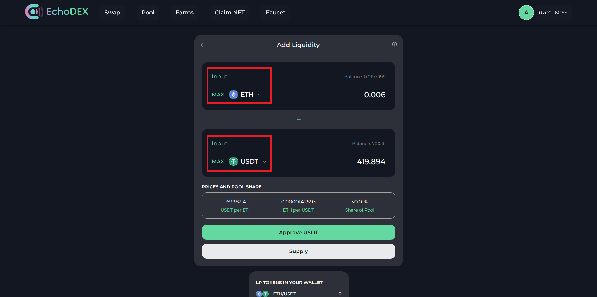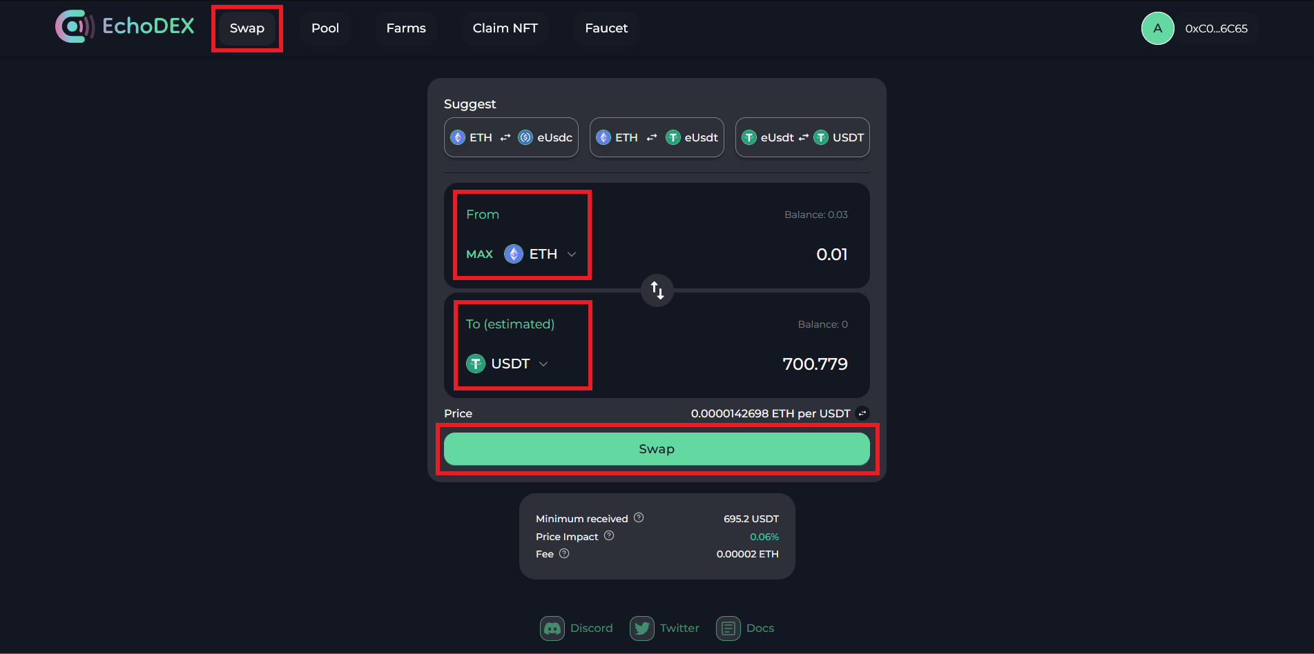 Now select the "Swap" tab at the top or go to testnet.echodex.io/swap