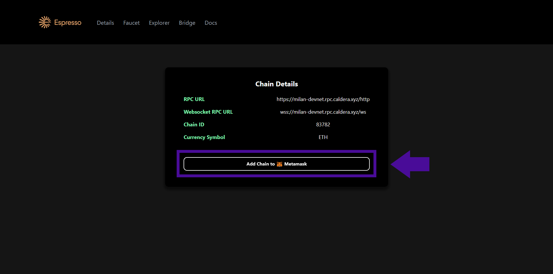 In this guide, we're going to take a look at Espresso on the Milan Devnet and how to interact with the faucet & bridge.