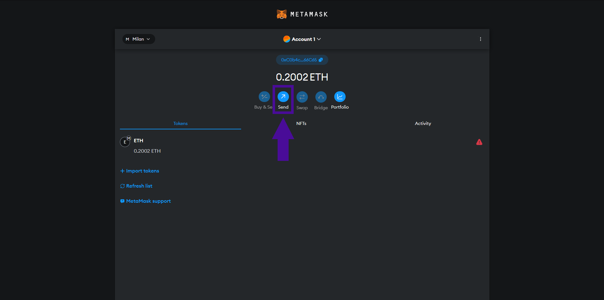 We can also perform some transfers by sending some ETH on Milan to another ETH address.