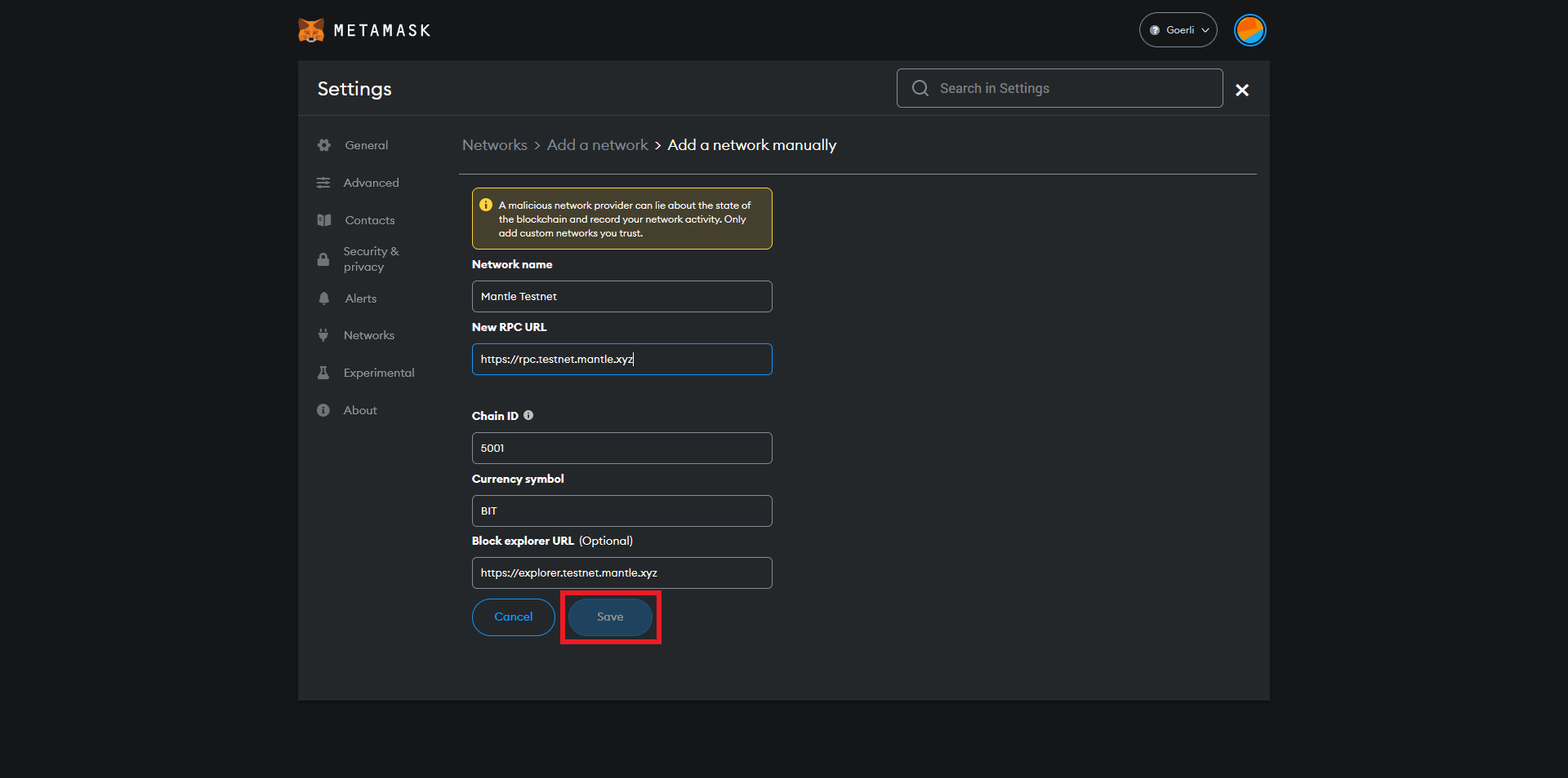 - Block Explorer URL: https://explorer.testnet.mantle.xyz