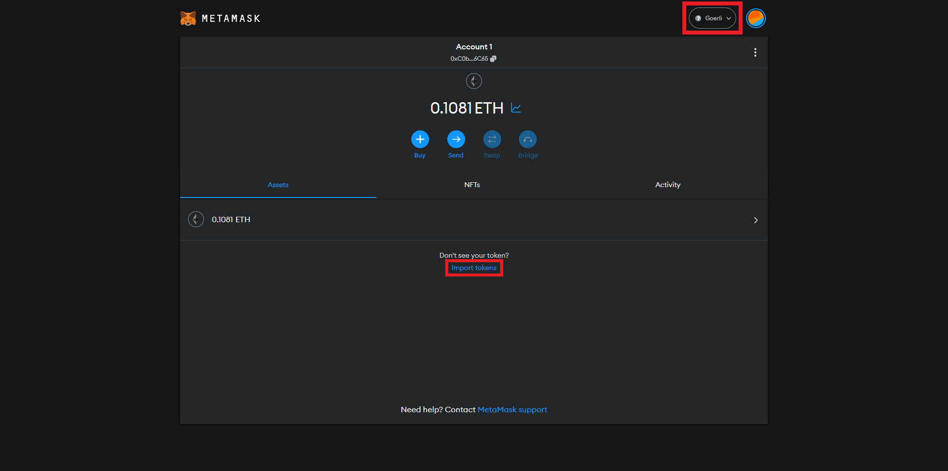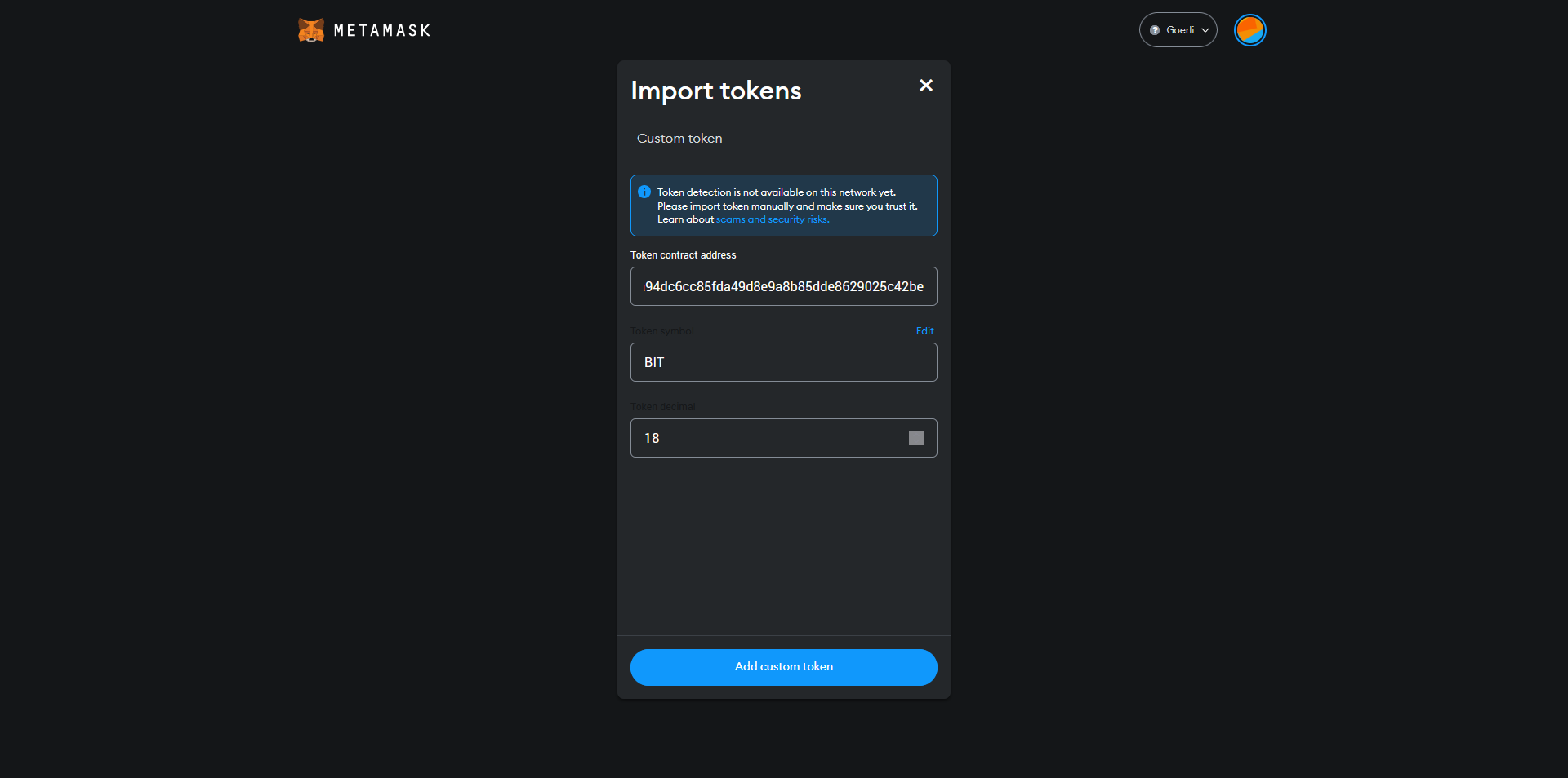In MetaMask, click "Import Token", input the details below & then "Add custom token".