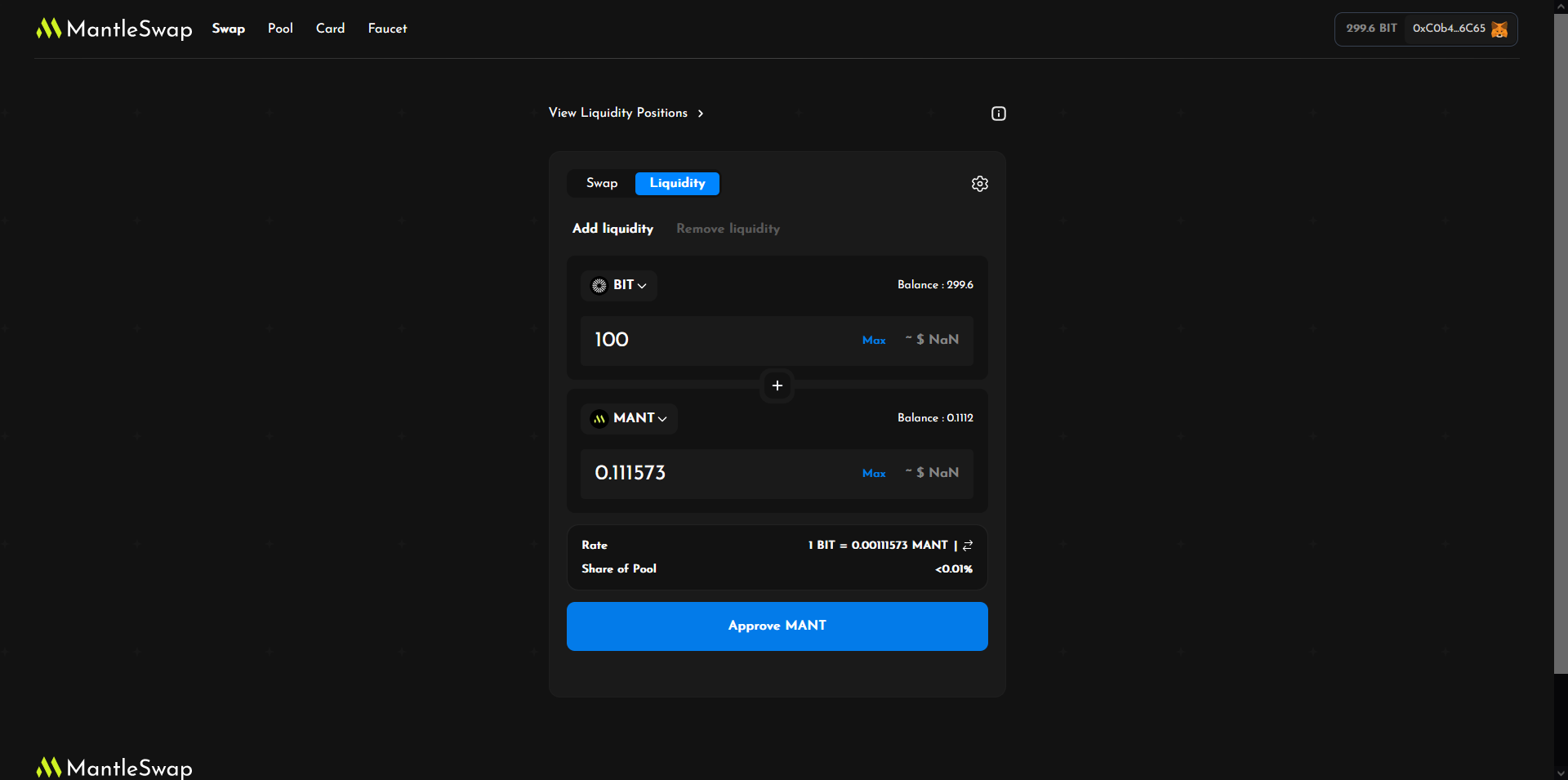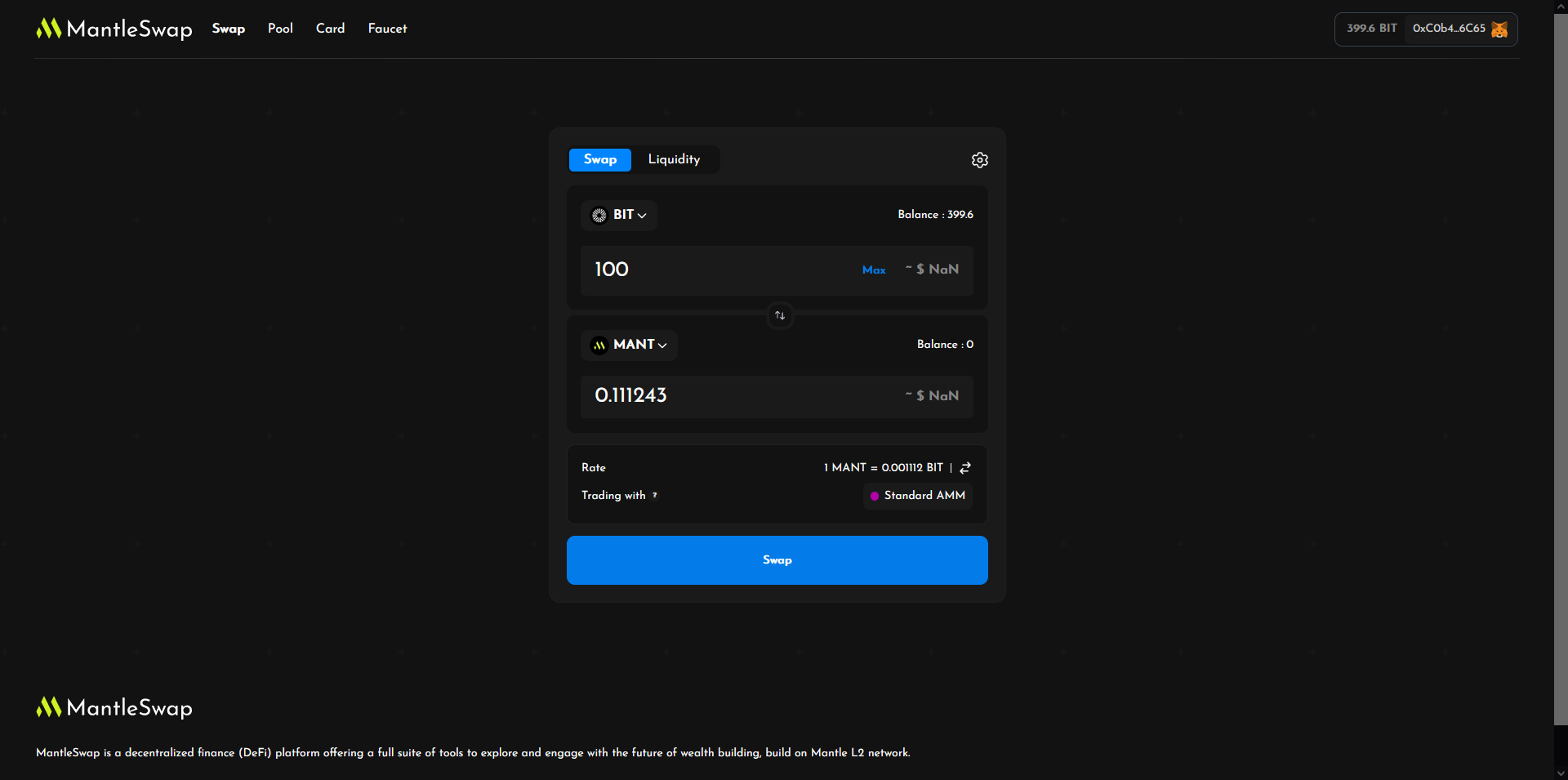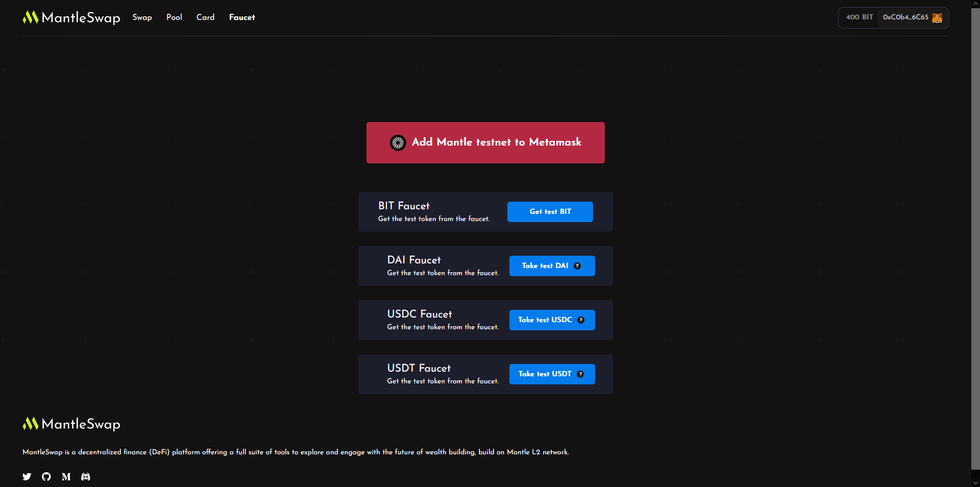 Now we should go to MantleSwap to claim some test tokens from a few Faucets.