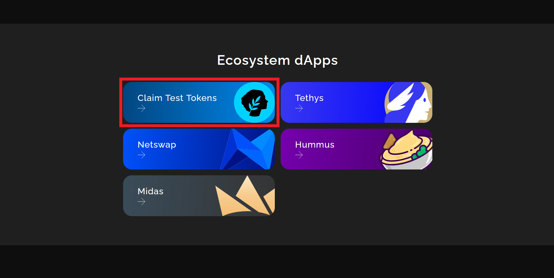 Scroll down and click "Claim Test Tokens".