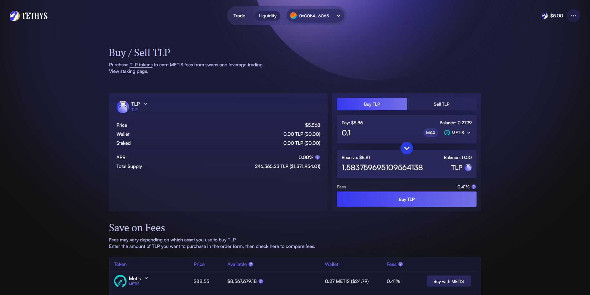 Now we're going to select the Liquidity tab so we can buy/sell LTP tokens.