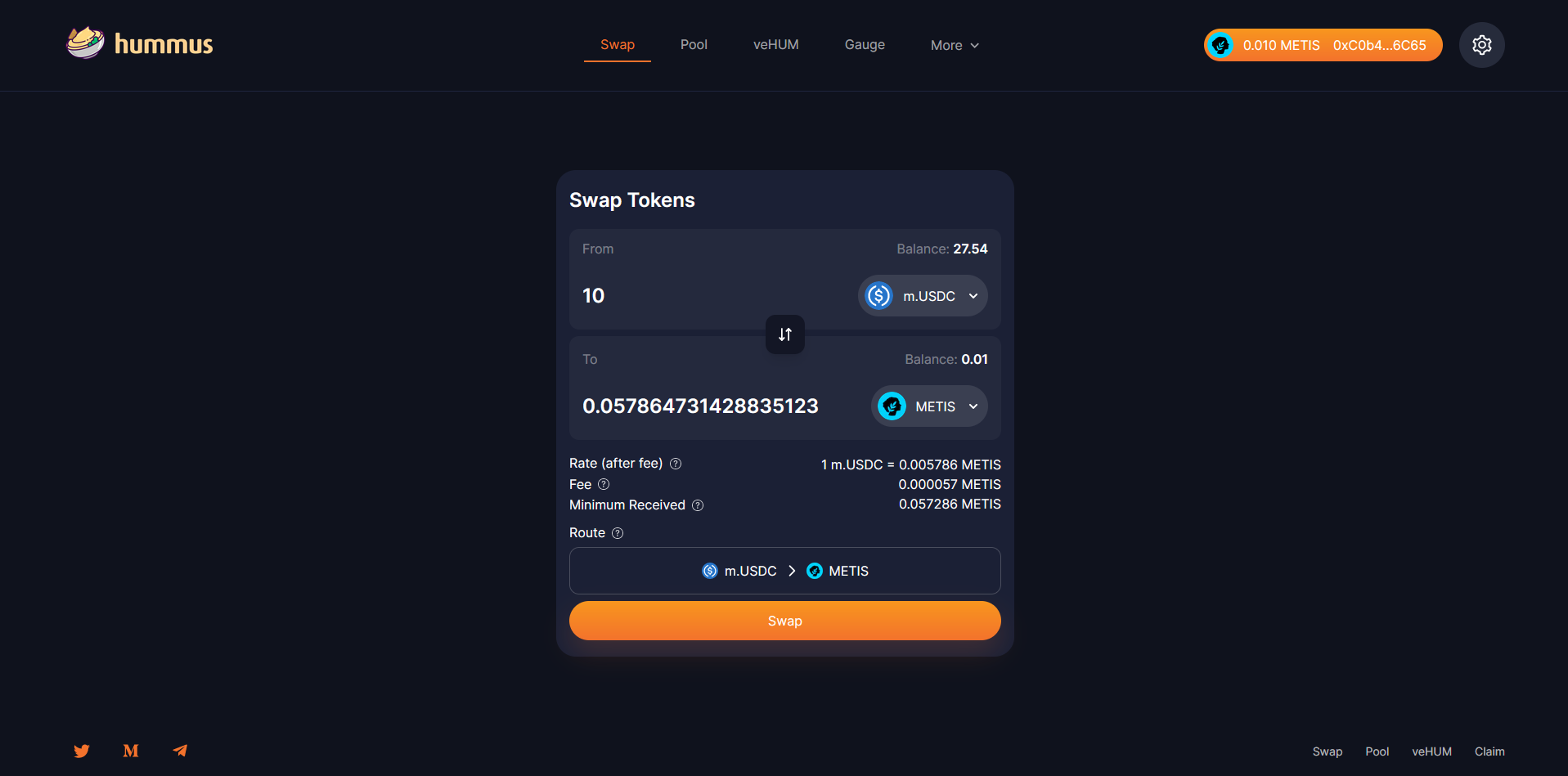 If you need more tokens for other testnet interactions, you can swap some USDC back to METIS.