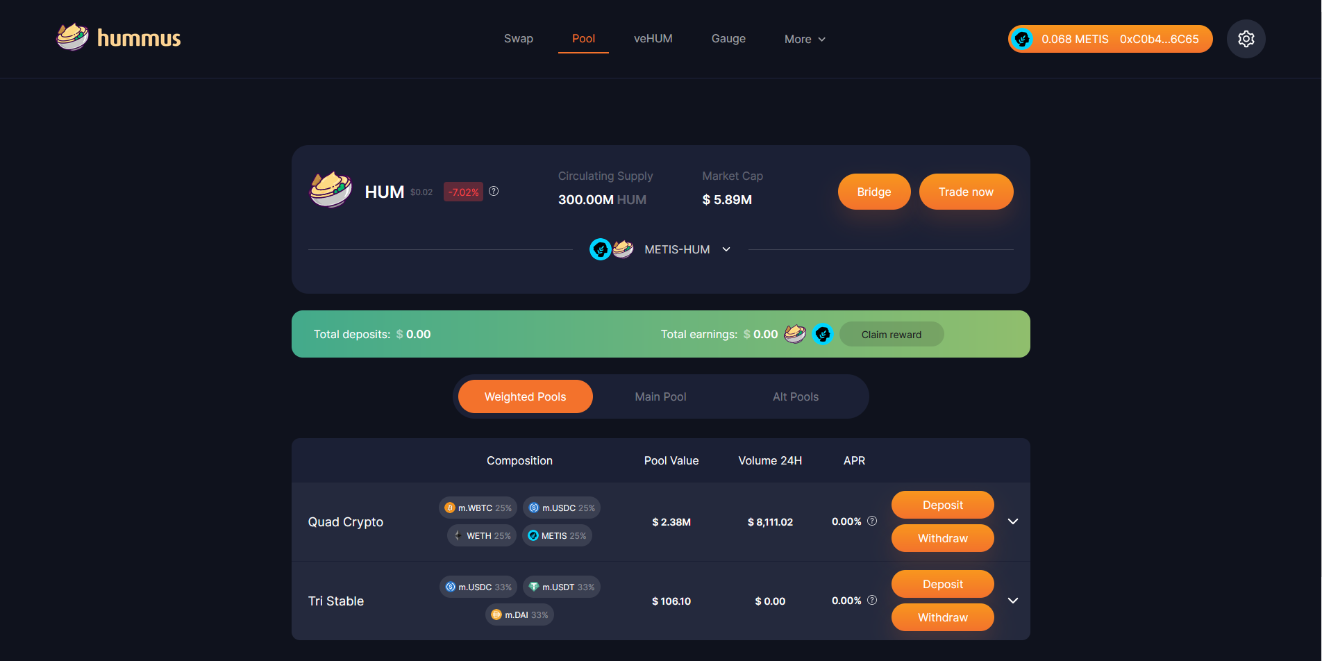 Go to https://app.hummus.exchange/ & connect your wallet.