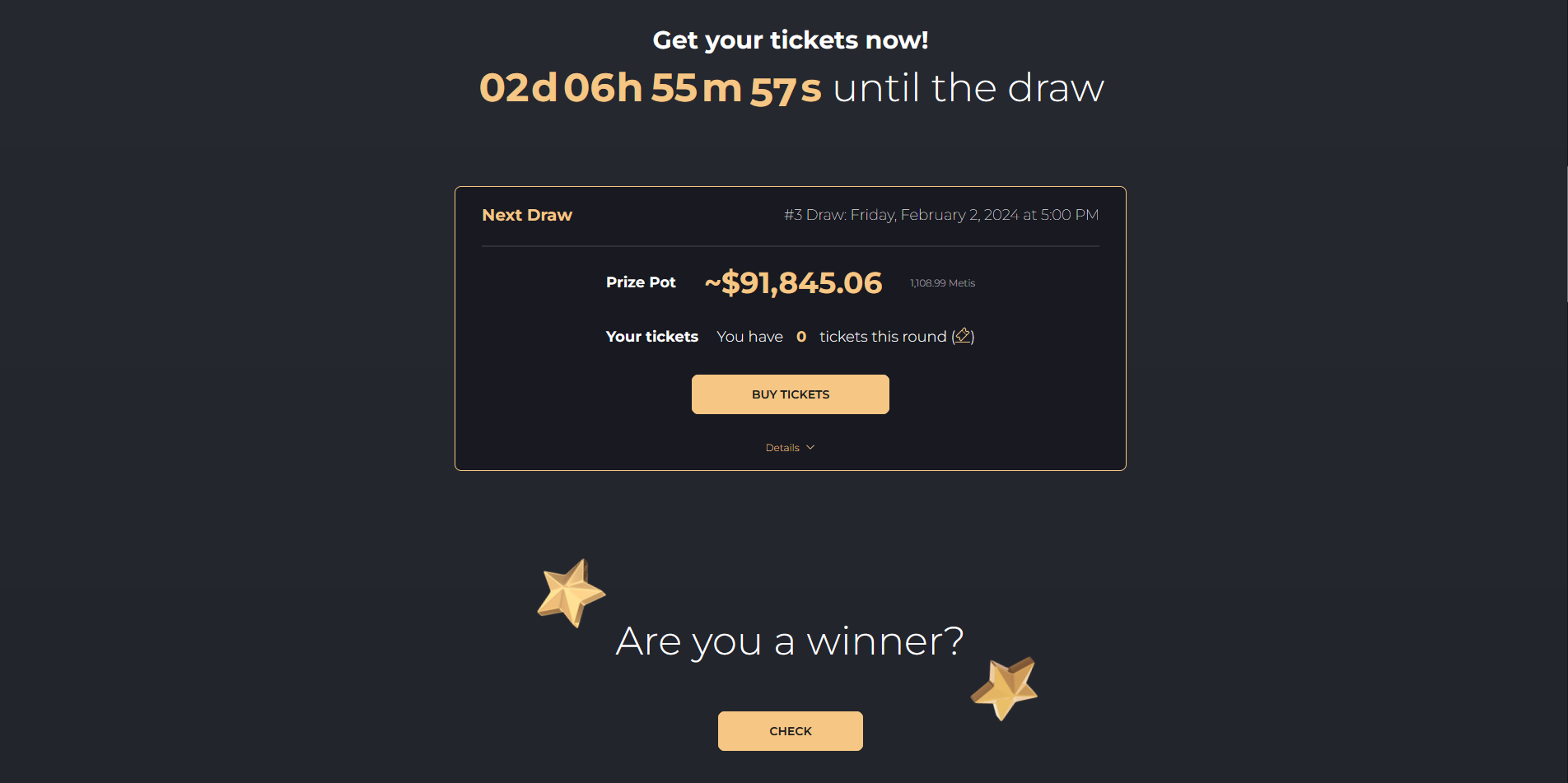Scroll down and click "Buy Tickets", enter an amount, approve transaction and buy.