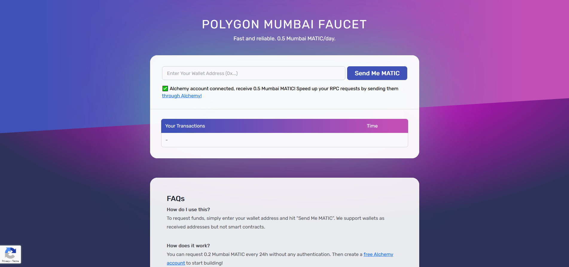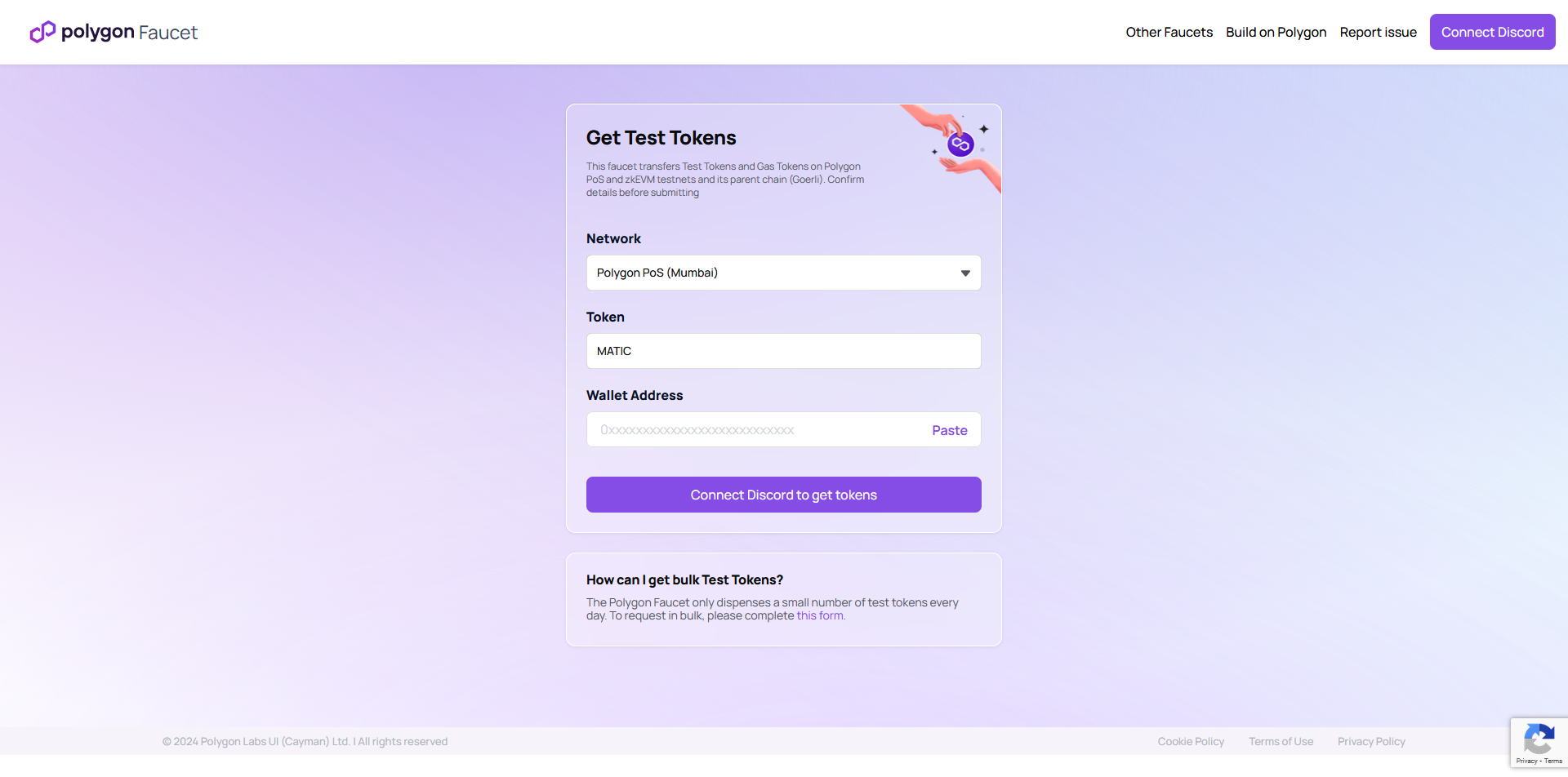 Now head over to mumbaifaucet.com to claim test tokens.