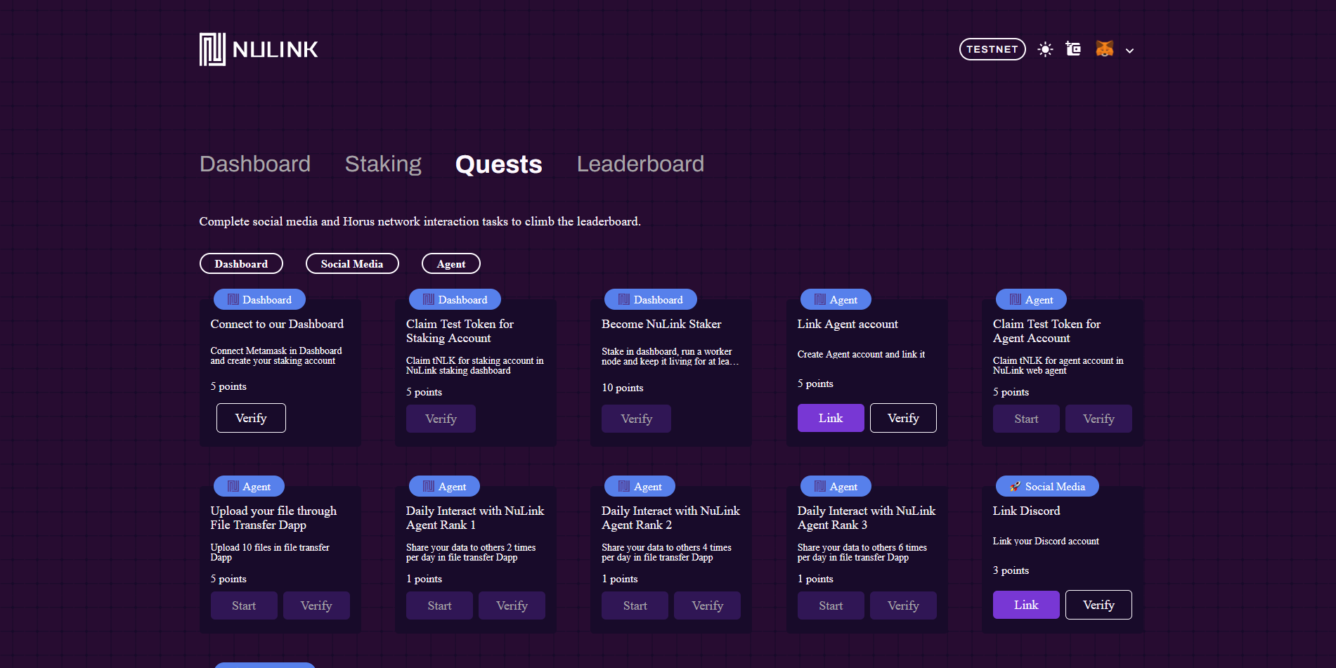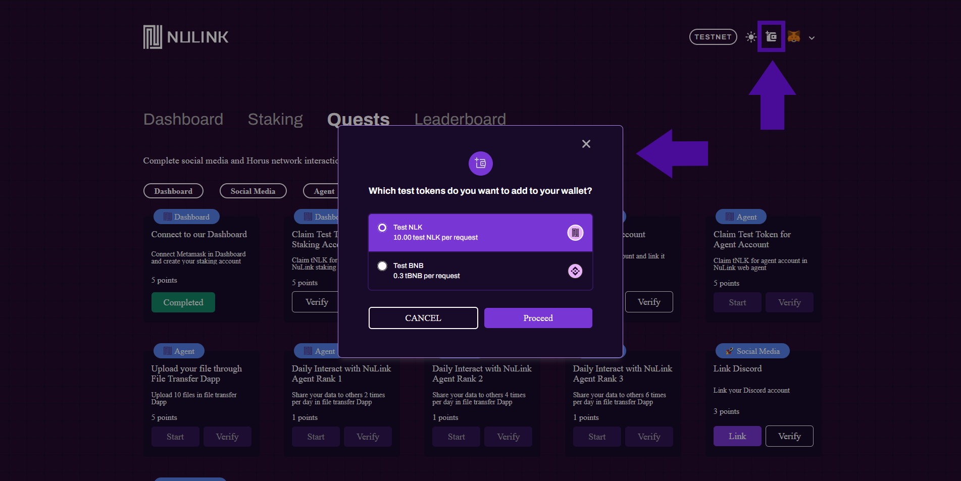 Now head over to the NuLink Quests Dashboard & connect wallet.