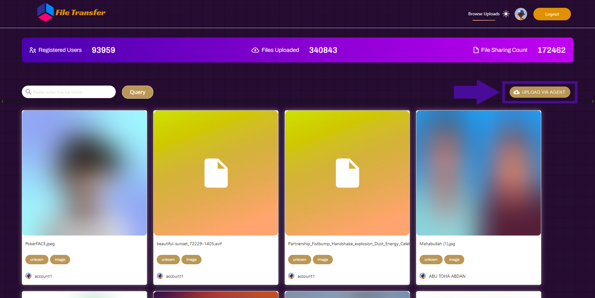 Now we need to click the "Upload via Agent" button and upload a total of 10 images.