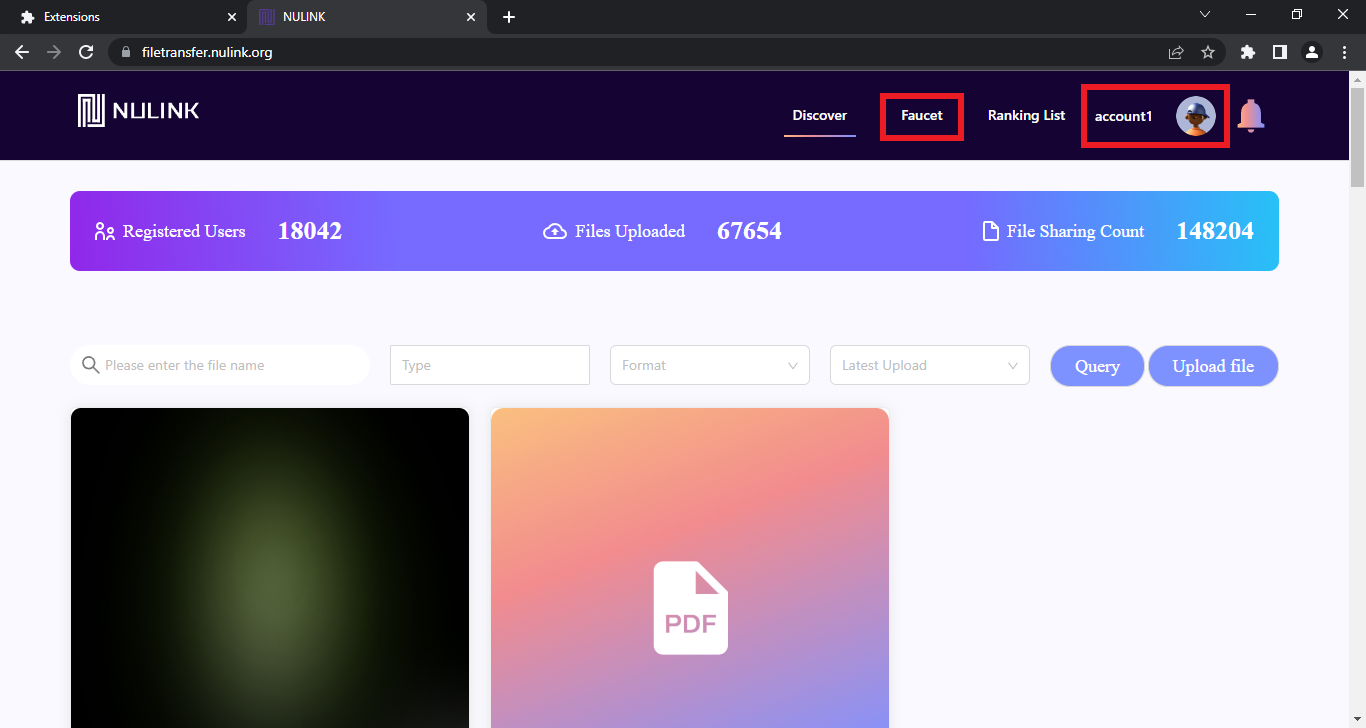 Now go to FileTransfer.Nulink.org & connect your wallet if it doesn't connect automatically.