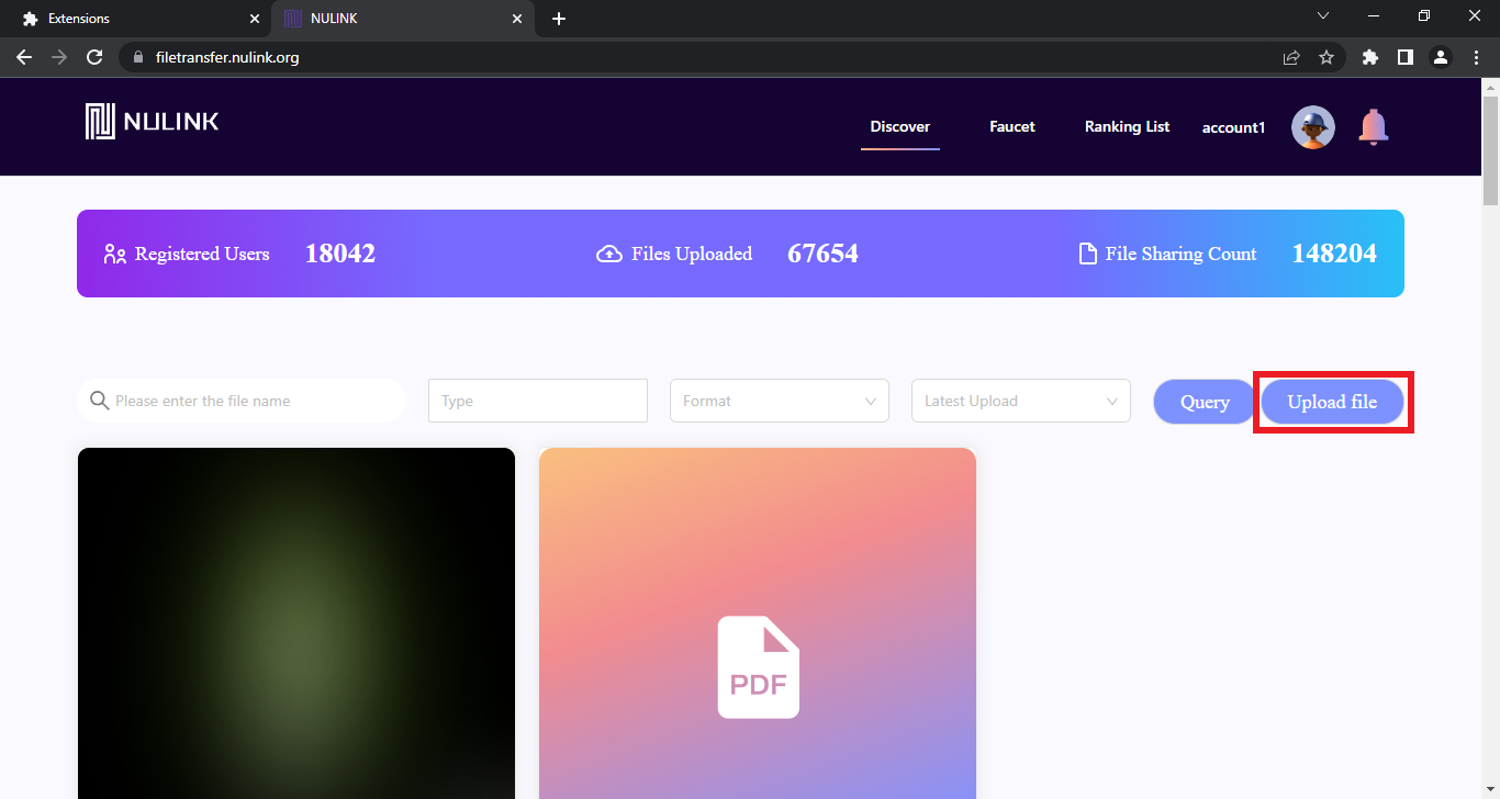 Now go back to the homepage & select "Upload file".