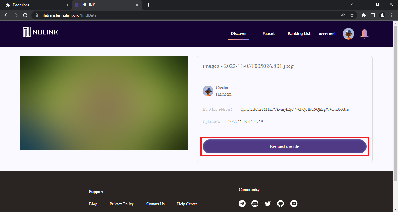 Now go to FileTransfer.Nulink.org/find, select any file, input number of days & click "Submit".