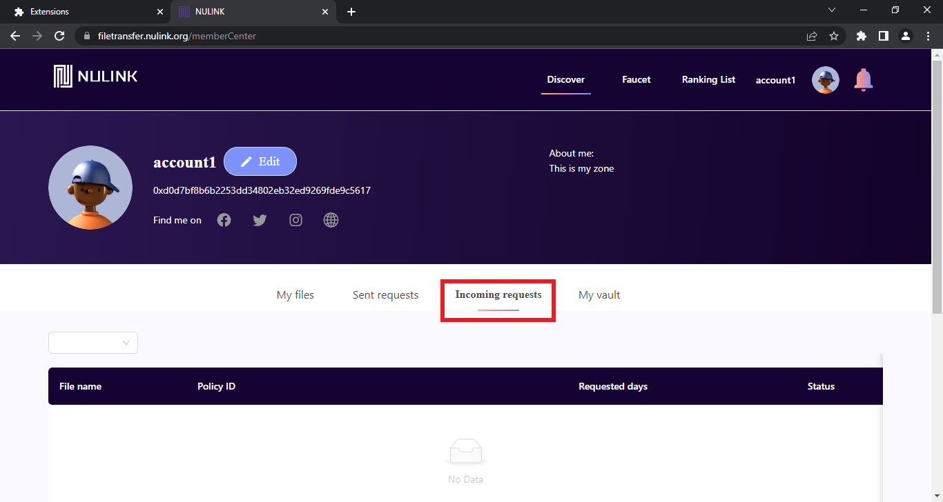 To accept file requests, go to your profile & select "Incoming Requests".
