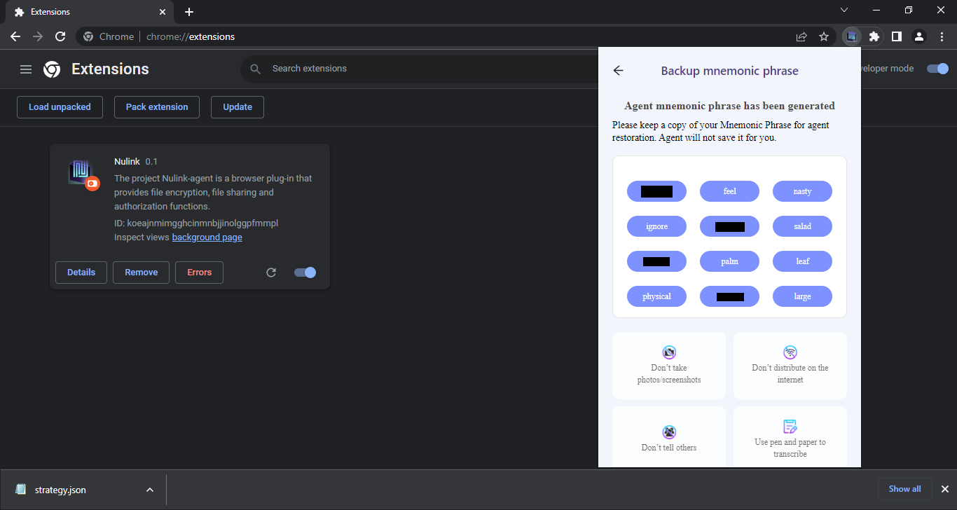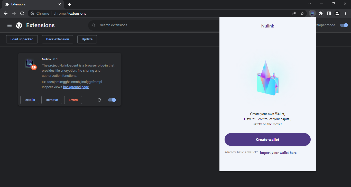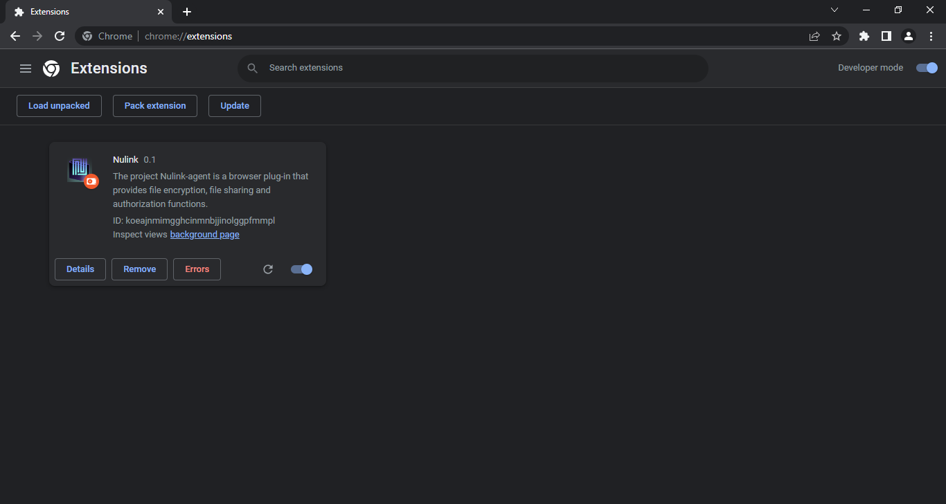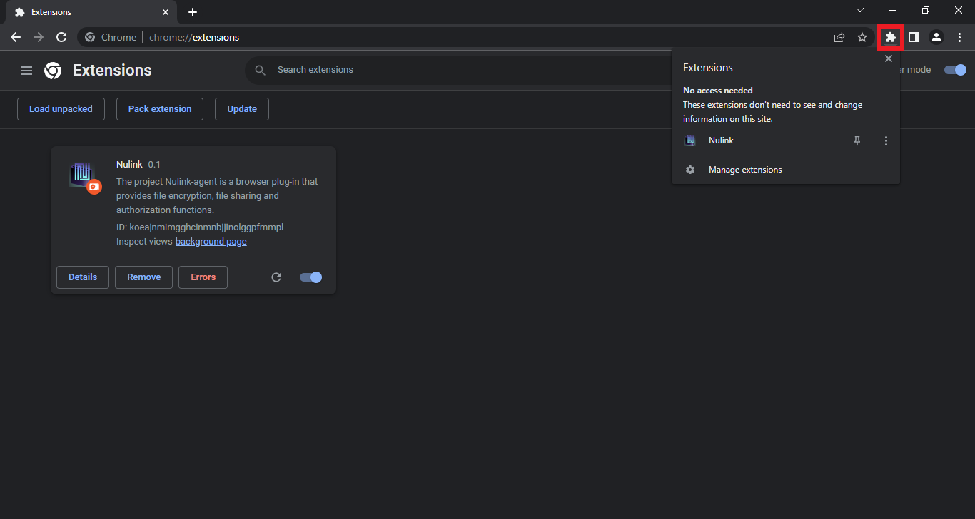 Go to your extensions page & turn on the "Developer Mode" switch, this will allow us to upload the Nulink Agent extension.