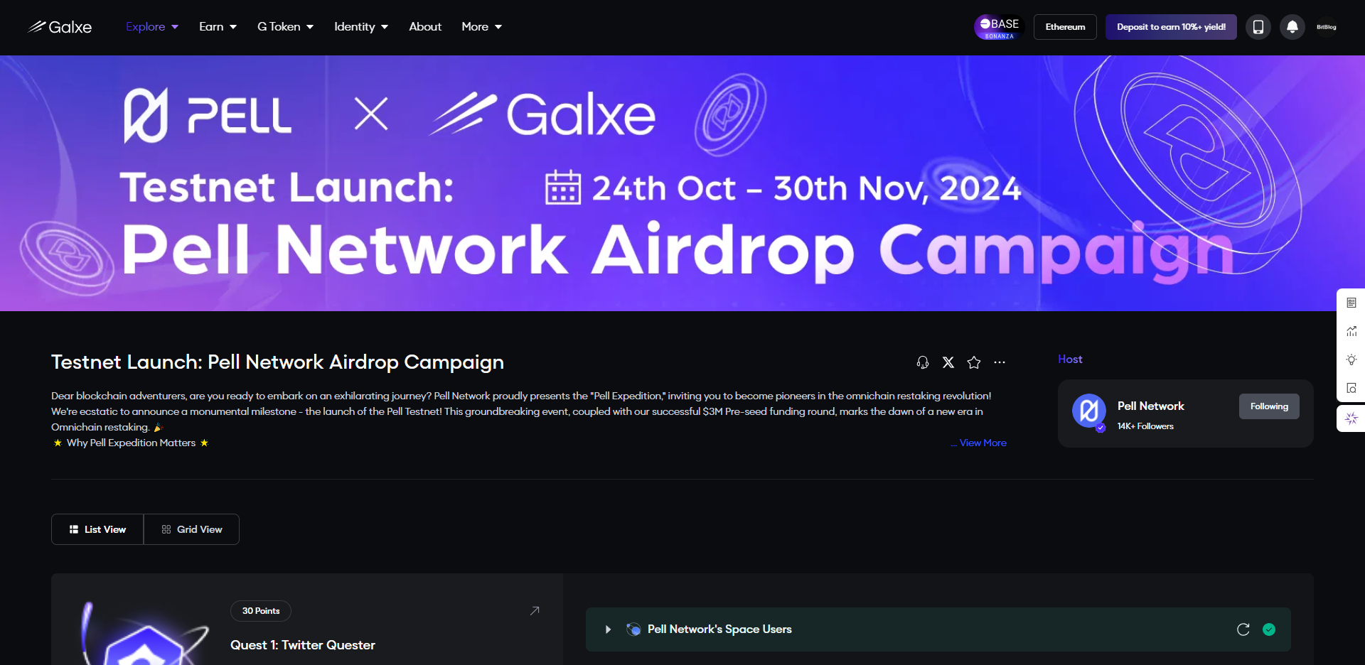 Next, let's head over to the Galxe Campaign and claim all our points for completing the steps: app.galxe.com/quest/PellNetwork/GCX3UtVtjr