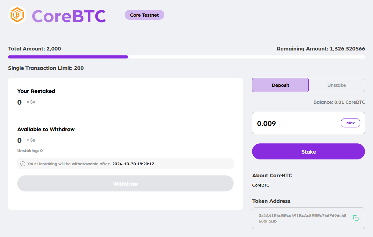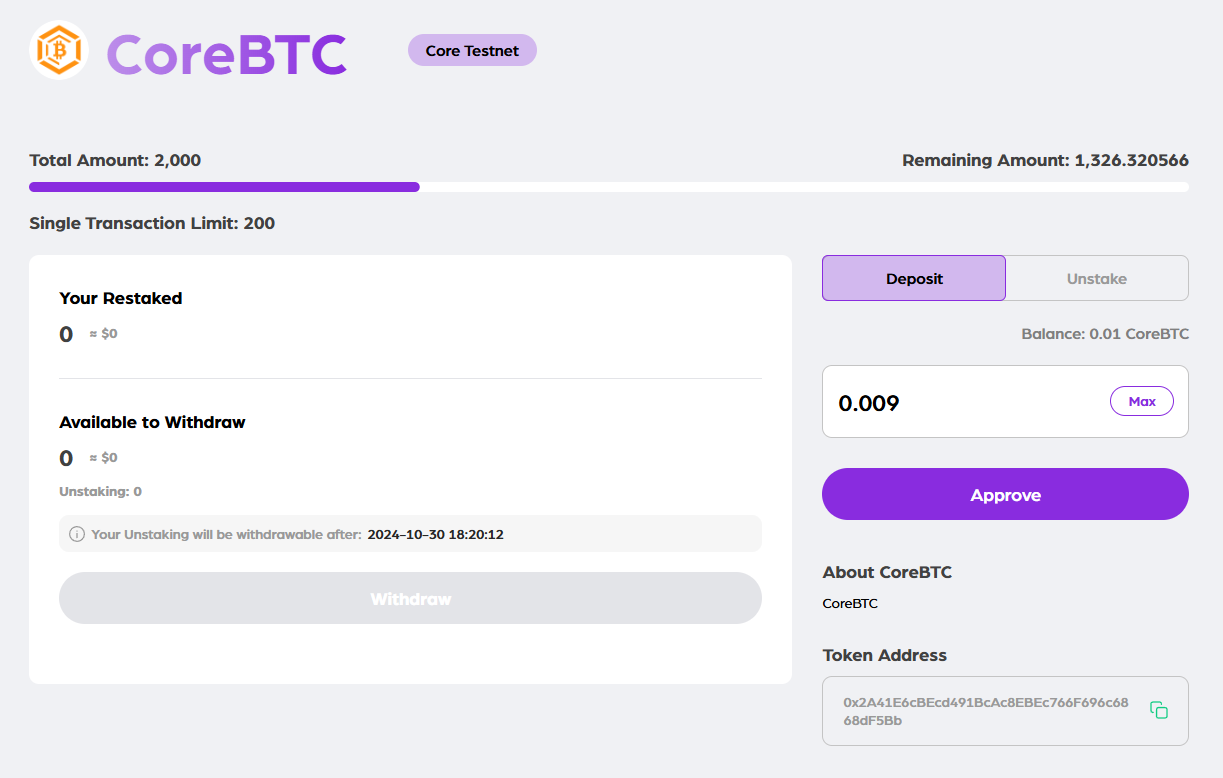 Go to: test.pell.network/restake & press "Restake Now" on CoreBTC.