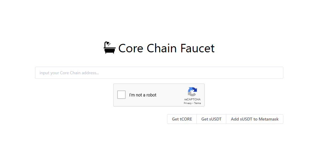 Now go to: scan.test.btcs.network/faucet & insert your MetaMask wallet address and press "Claim tCORE".