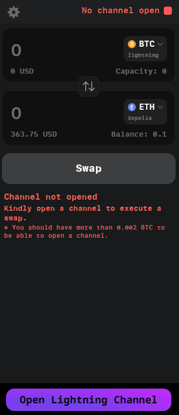 To do this, open Portal DEX and go to the Swap tab, then press "Open Lightning Channel".