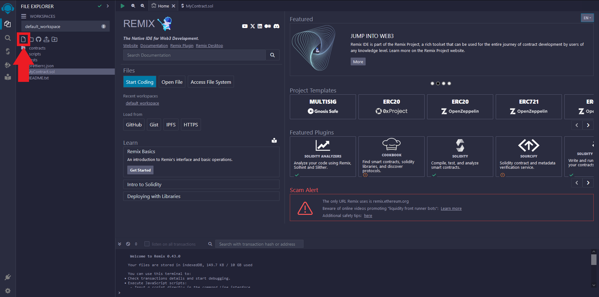 Once you've accessed the site, create a new file and name it anything you like, for example: "MyContract.sol" make sure to type the ".sol" file extension.
