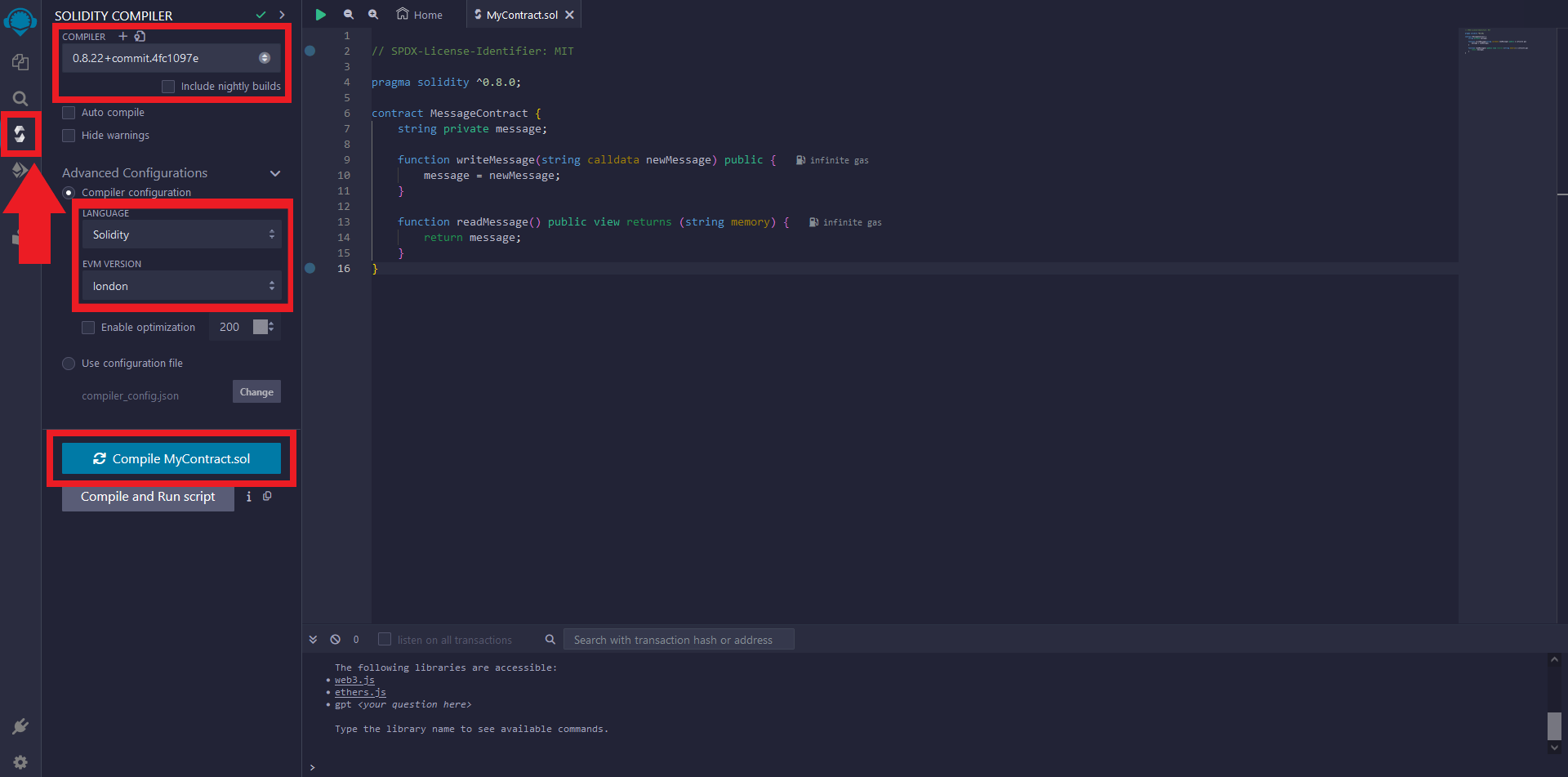 Now go to the third tab (Solidity Compiler) on the left-side navigation bar.