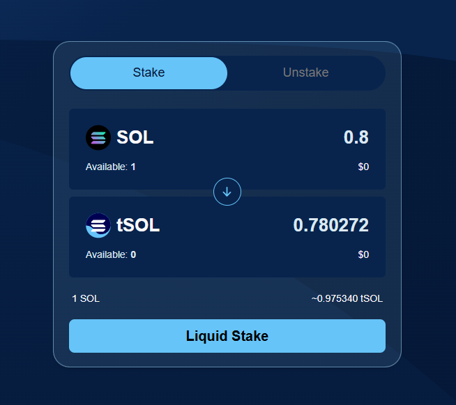 Insert any amount of test SOL and hit "Liquid Stake".