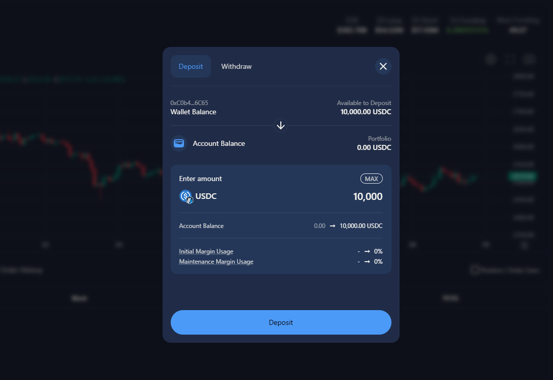 Now press the "Transfer" button and deposit the full amount of tokens from the Wallet Balance to the Account Balance.