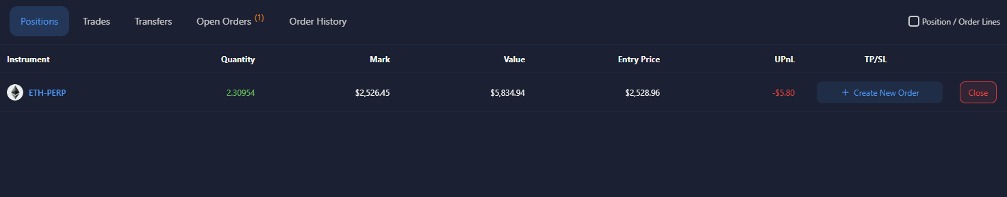 After that, you should see your open positions listed underneath the chart.