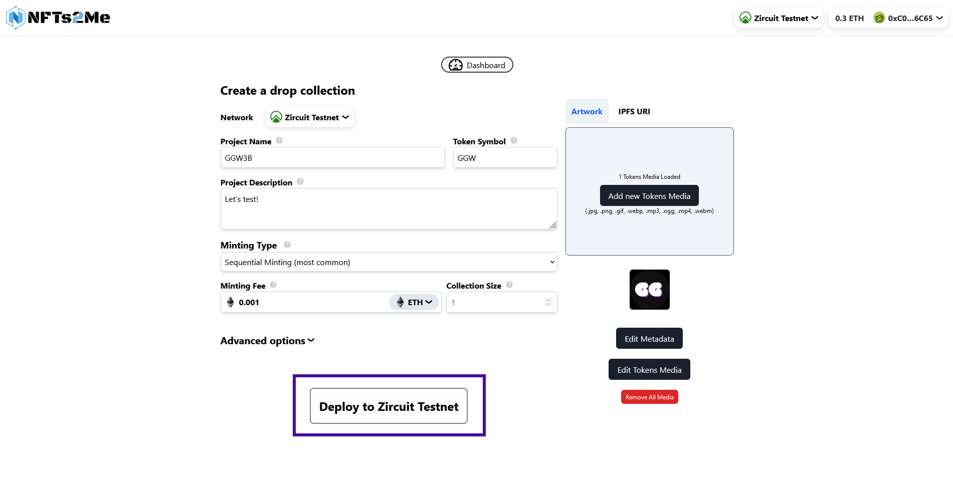Next, we're going to mint an NFT collection on Zircuit testnet!