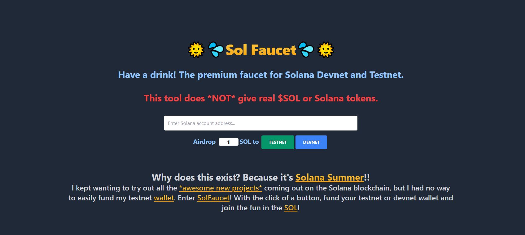 We can also head to the SOL faucet & claim some test SOL so that we're ready for the testnet launch!