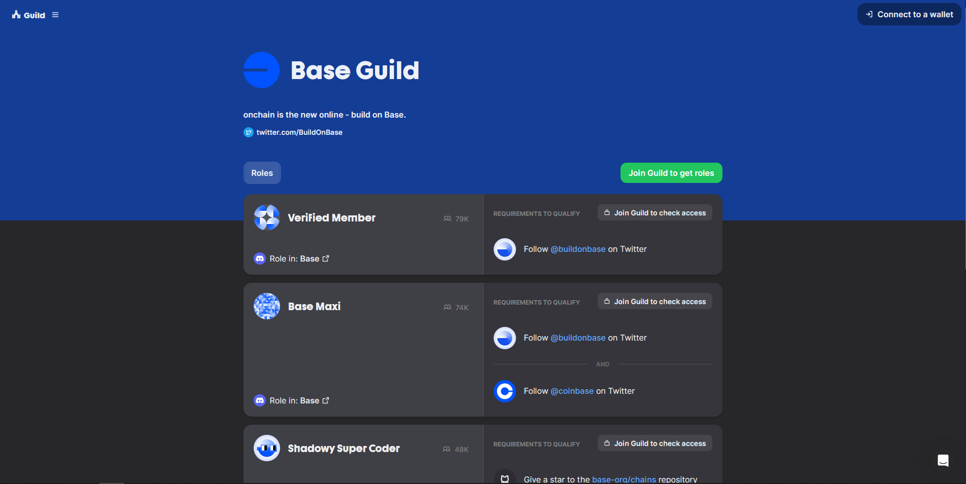 You should also go to guild.xyz/buildonbase, connect your wallet, join the Guild & try to complete as many tasks as possible!