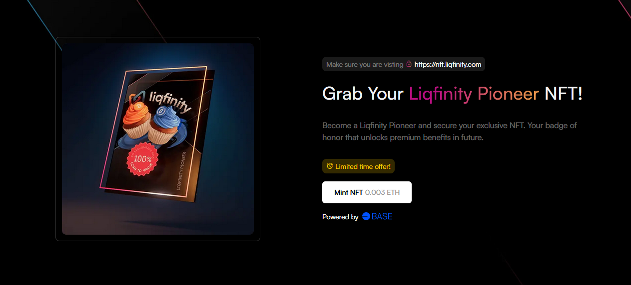 To do this, we need to head over to: nft.liqfinity.com & press "Mint NFT".