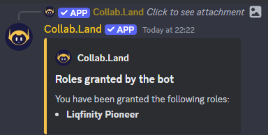 After minting your NFT, you can go to the Liqfinity Discord server and use the verify-your-nft channel to verify that you own the NFT which will grant you the Pioneer role on Discord.
