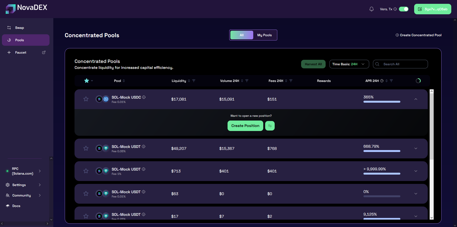 - Permissionless Pool Creation: Users can freely create liquidity pools for any token on NovaDEX, enabling diverse trading options.