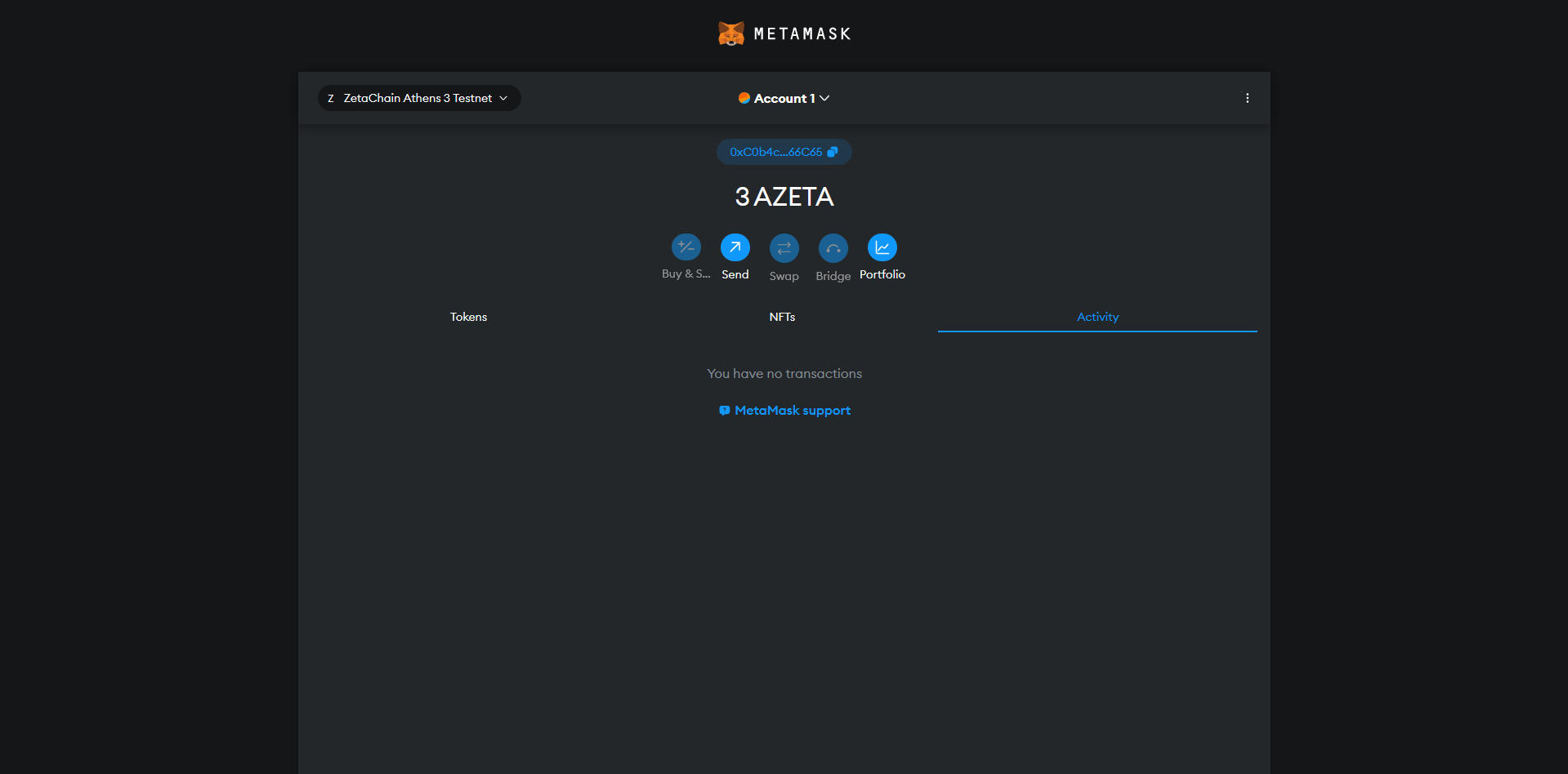 The network activity will still be under the same address though since we just imported our MetaMask wallet into XDeFi wallet.