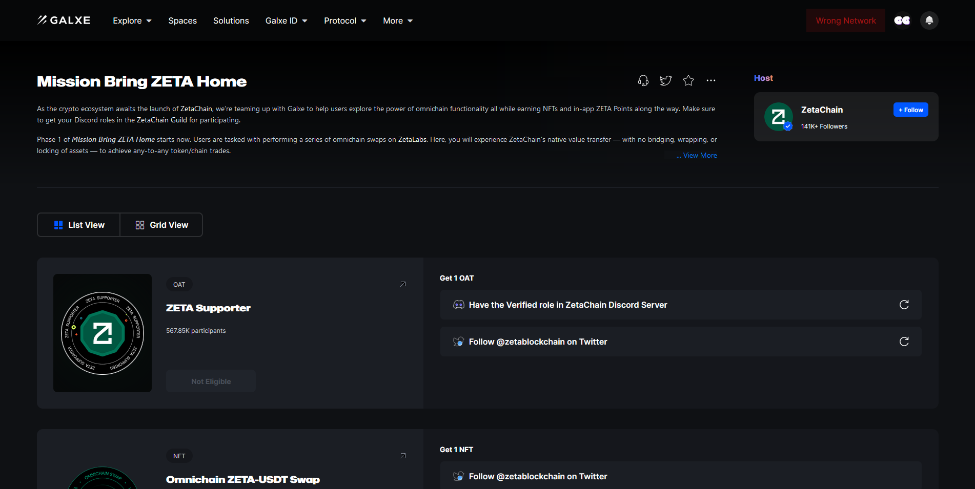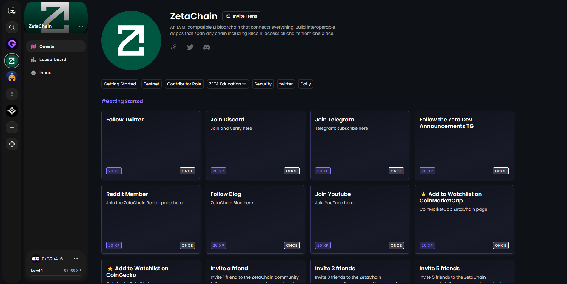 Next, let's head over to the Galxe Campaign, here we can claim the Zeta Supporter OAT (Onchain Achievement Token), not only that but you can also complete both the "Zeta Assimilated 101" & "Zeta Assimilated 201" quiz!