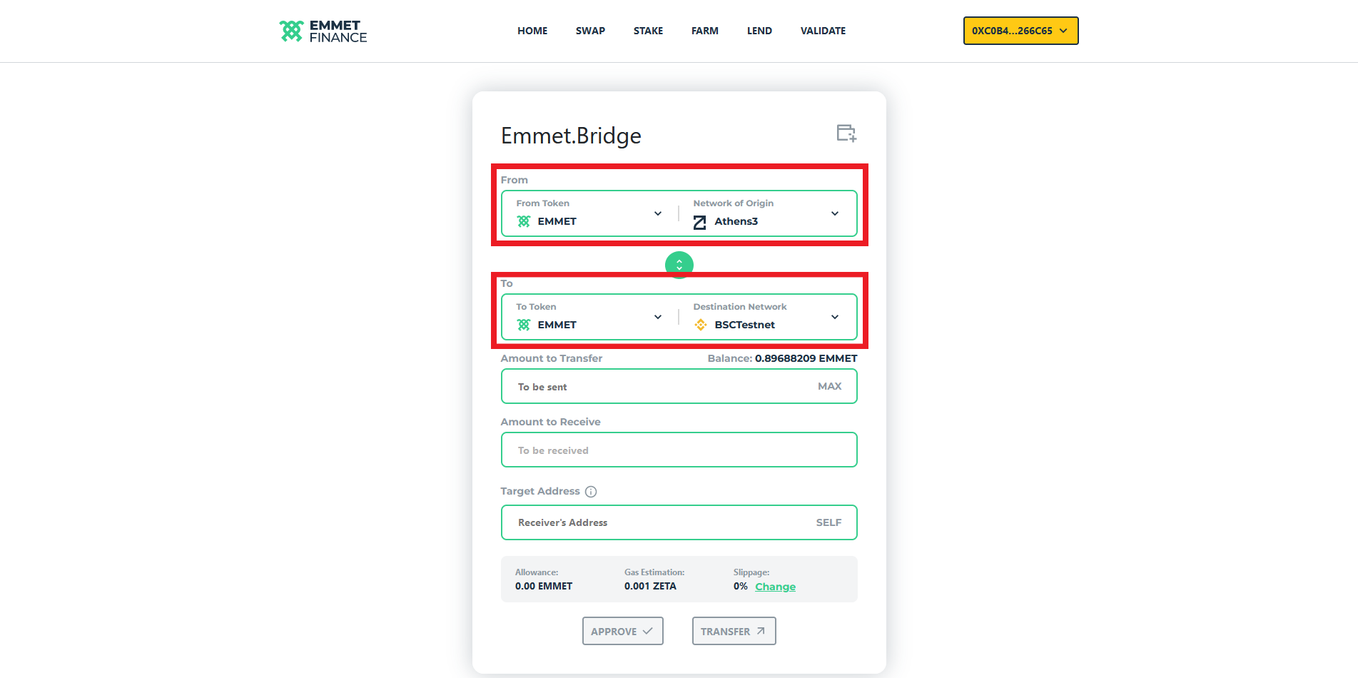 Next, select "EMMET" token, and set the "Network of Origin" as "Athens3".