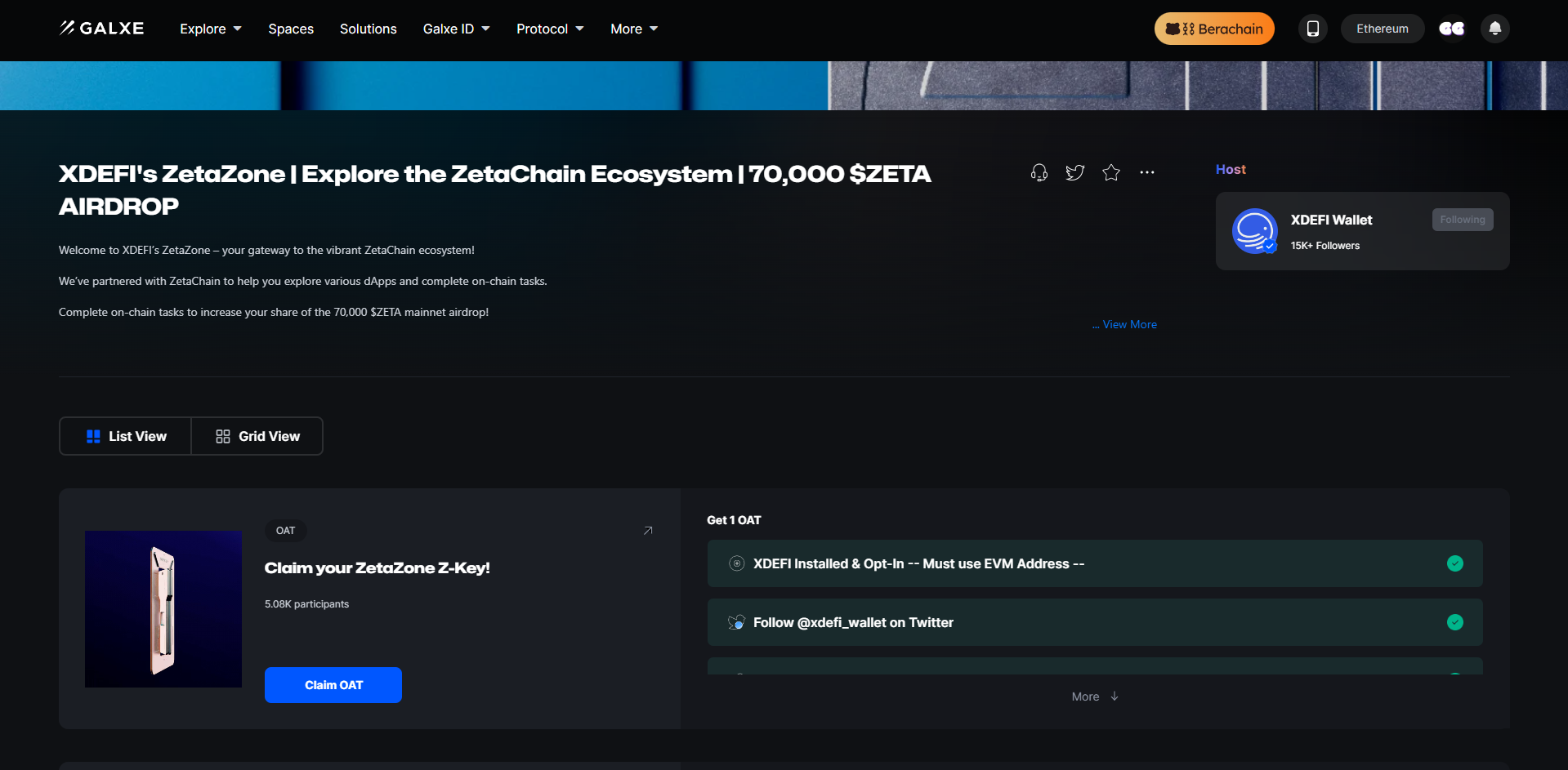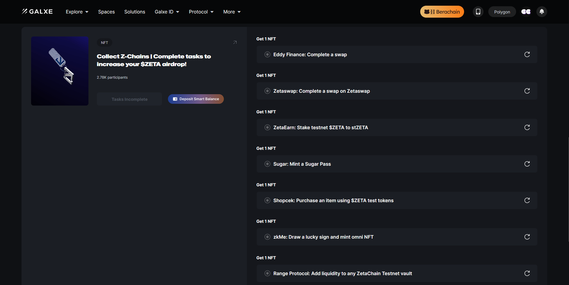 Here we can complete some more tasks that'll grant us a ZetaZone Z-Key OAT (On-chain Achievement Token), as well as eight Z-Chain NFTs!