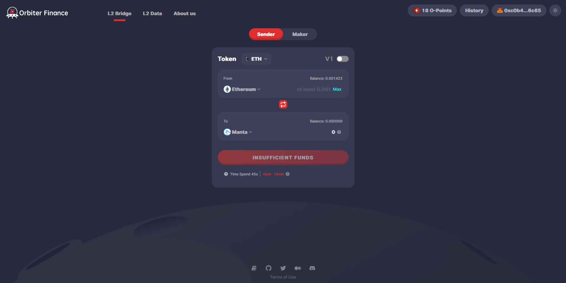 First of all, head over to Orbiter.Finance & connect your wallet.