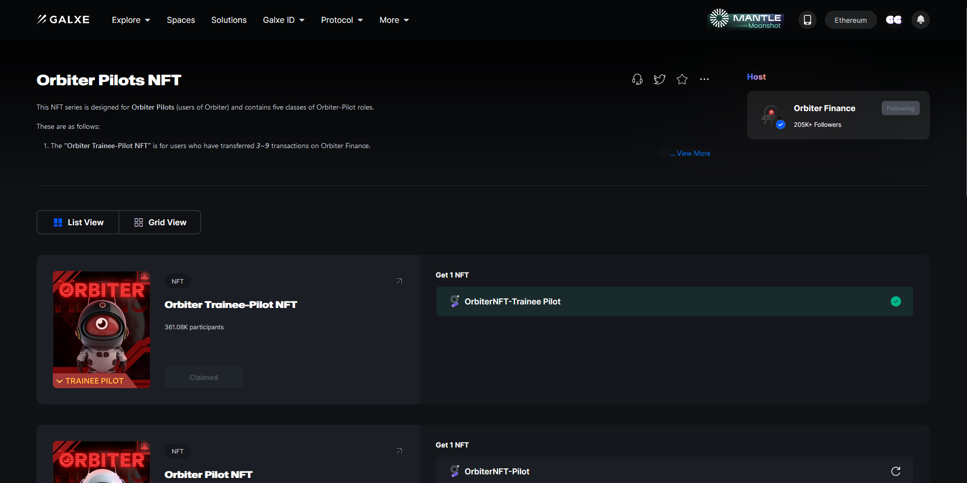 - The “Orbiter Pilot NFT” is for users who have performed 10-49 transactions on Orbiter Finance.