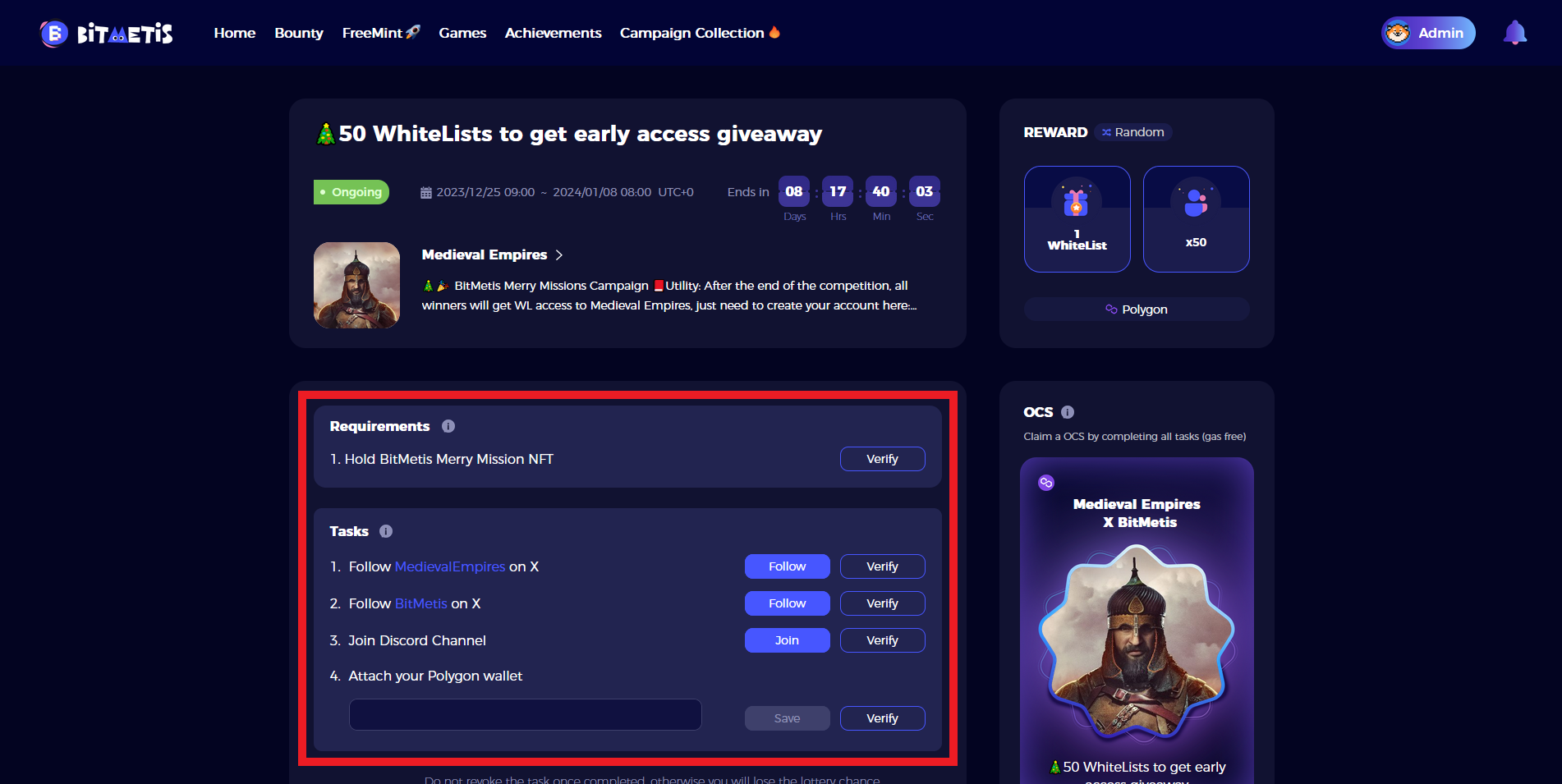 Now that we have the Ticket (NFT), we can go ahead & proceed to the campaign: bitmetis.io/merry-mission