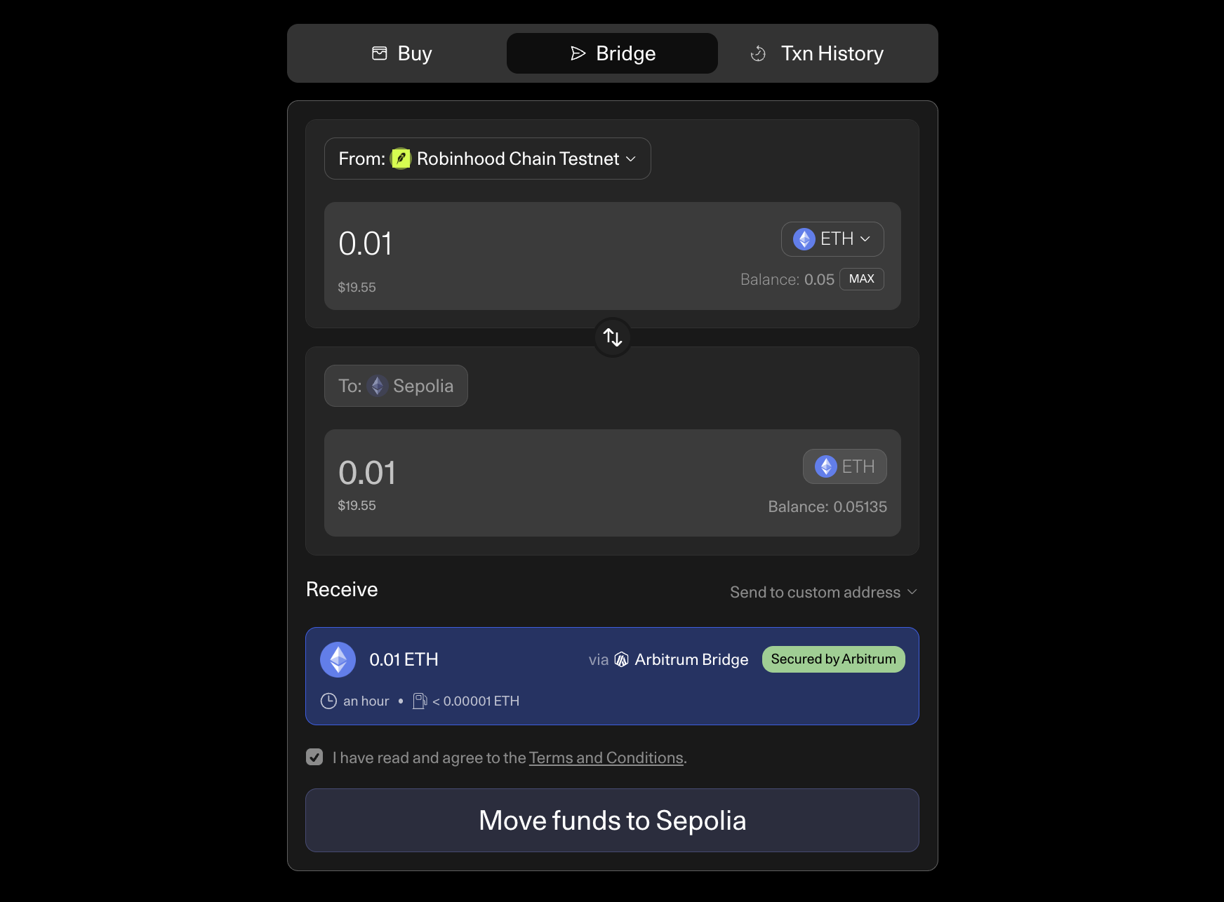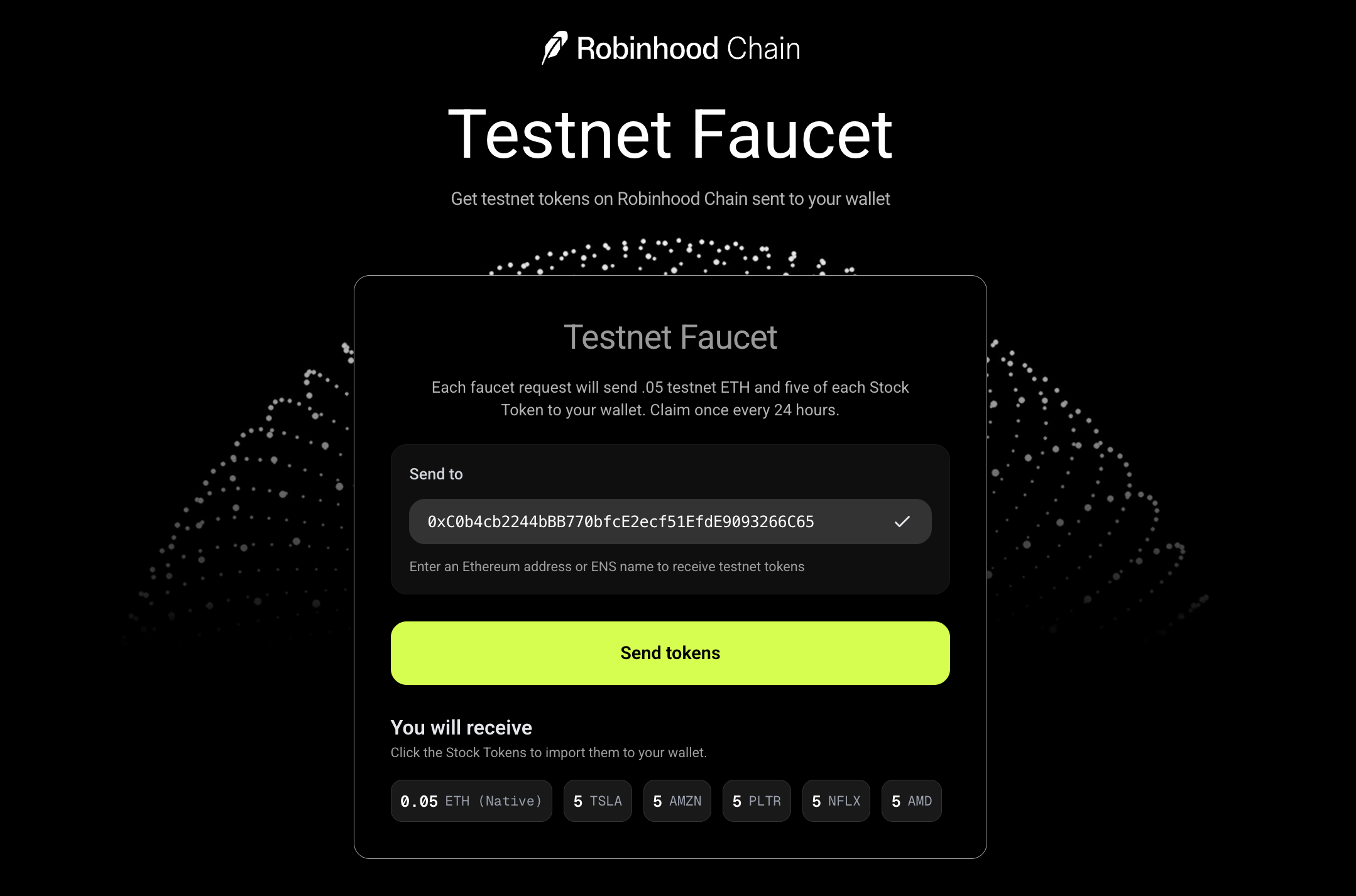 This tutorial walks you through the basics of getting started: claiming test tokens from the faucet and using the bridge to move assets to and from the Robinhood Chain testnet. By the end, you’ll have everything you need to begin interacting with the network and testing its core features.