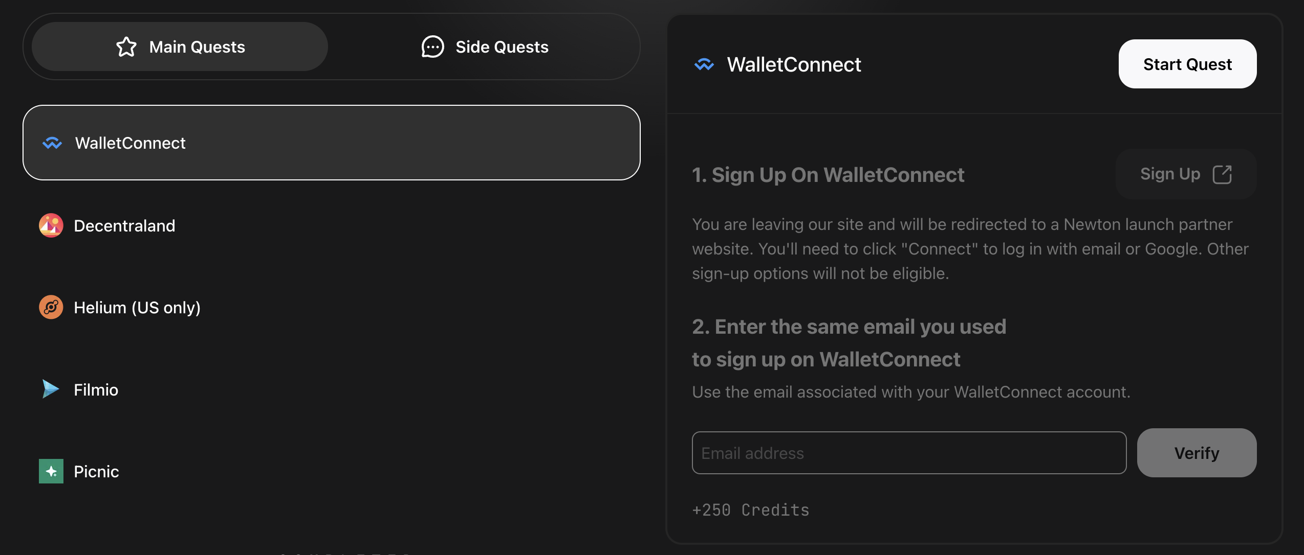 For the first quest, we need to sign-up for WalletConnect using the same email we used when signing up for Magic Newton.